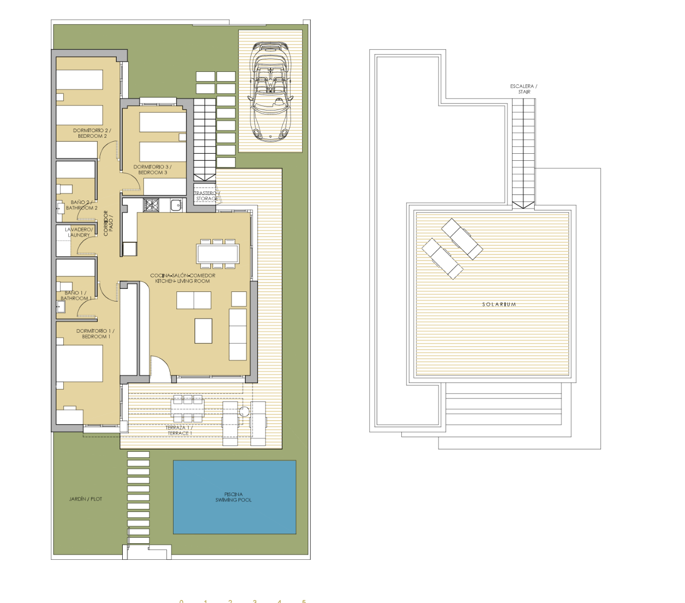La propriété bénéficie d'un vaste espace extérieur pour profiter au maximum de la vie en plein air en Espagne, avec un jardin privé, une terrasse et, pour agrandir encore l'espace extérieur, un grand solarium de 44 m² sur le toit pour profiter du soleil toute la journée. Le terrain dispose également d'un parking privé et d'un placard de rangement.