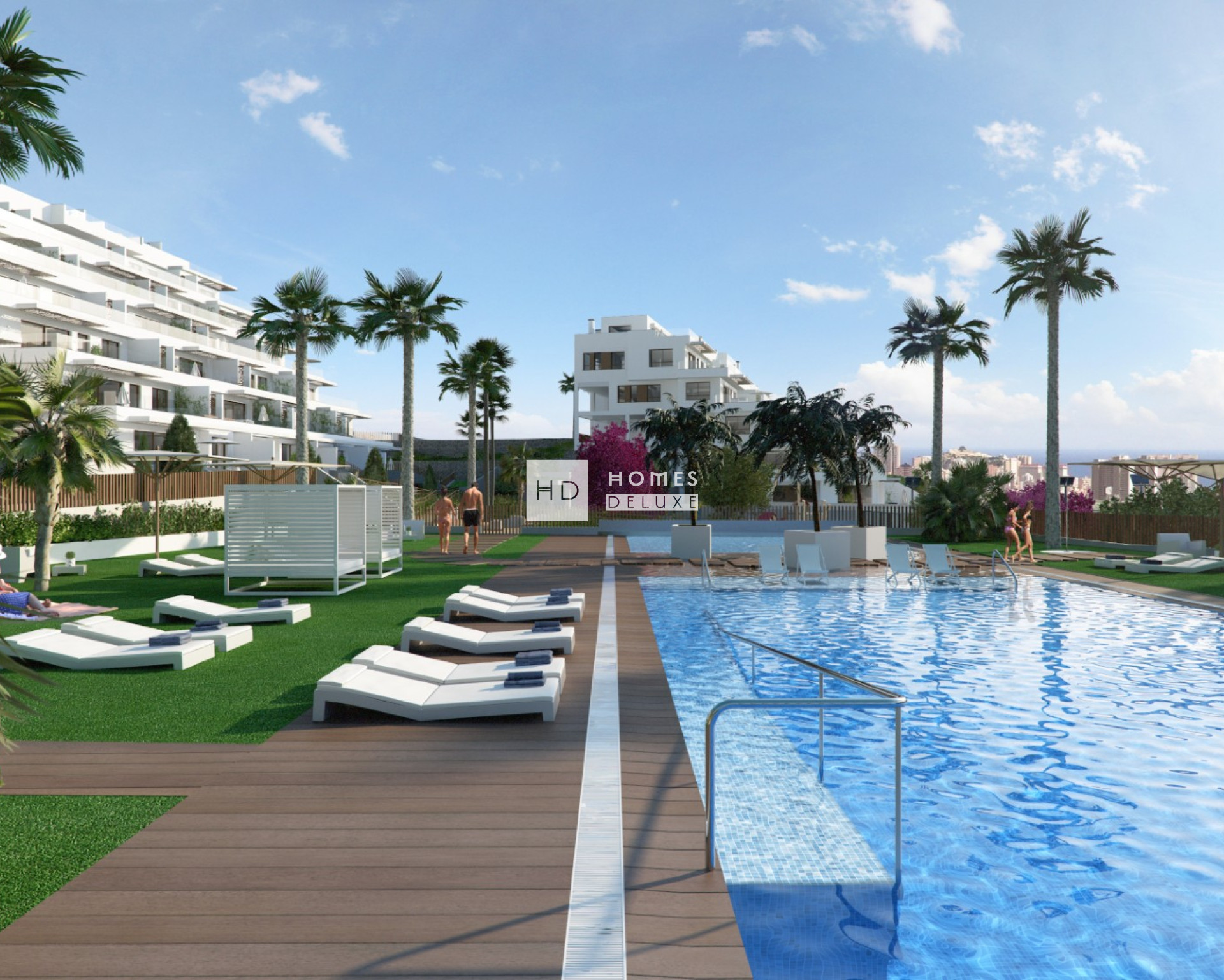 Le projet présente un design exceptionnel et une image d'avant-garde. Son architecture et son style contemporain s'articulent en partie autour des terrasses en gradins, qui offrent plus de lumière et d'intimité aux maisons, ainsi qu'un espace extérieur pour profiter du merveilleux climat. Au rez-de-chaussée, les maisons sont dotées d'un jardin privé à l'usage exclusif des propriétaires. Les maisons du complexe offrent des vues exceptionnelles sur la verdure de la région, la ligne d'horizon de Benidorm et la mer Méditerranée en arrière-plan.