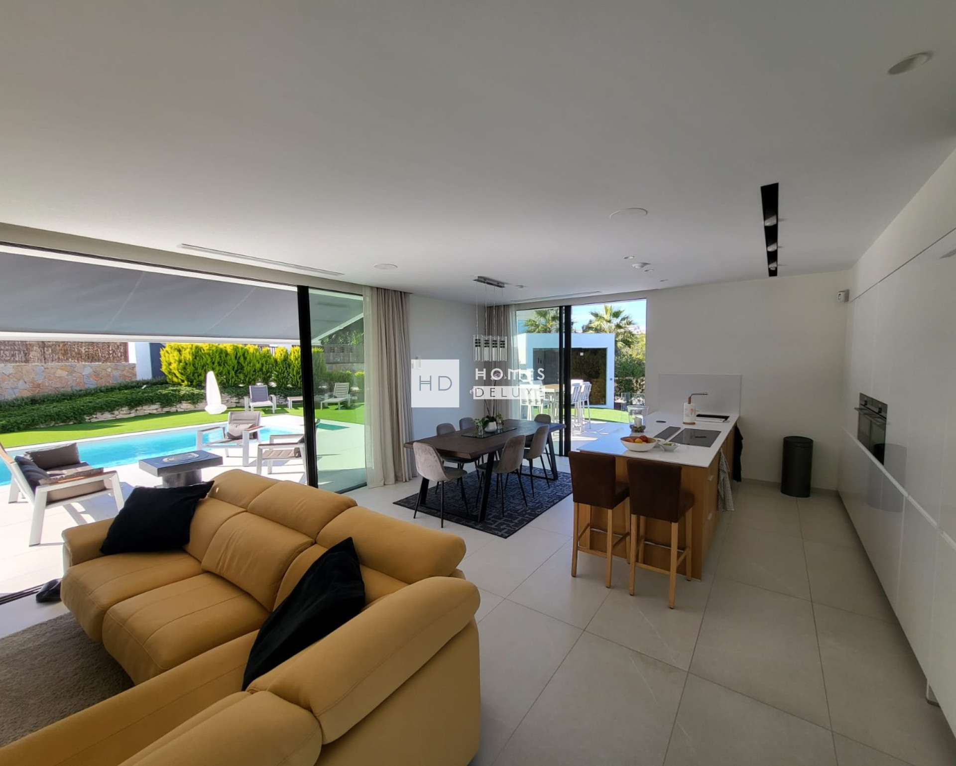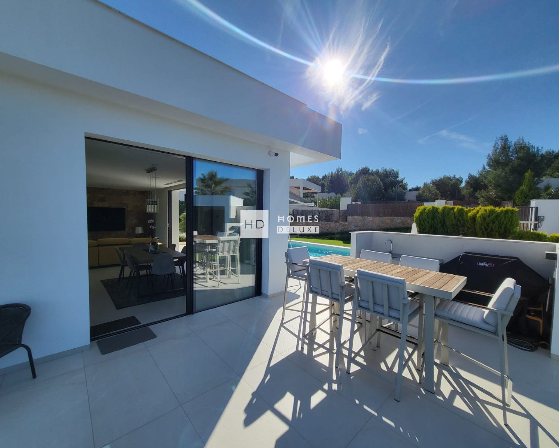 Mandarino Villa Las Colinas Golf avec 3 chambres à coucher 3 salles de bains, toilettes invités, piscine privée, jardin paysager et garage/sous-sol. Située dans la communauté tranquille de Mandarino, cette villa offre de nombreuses caractéristiques spéciales telles qu'un sauna finlandais, une cheminée extérieure/un espace de détente et une salle de bureau au sous-sol. Spacieux terrain de 1705m2 et villa de conception moderne avec des vues ouvertes sur la zone verte environnante, les gradins et la forêt méditerranéenne. Finition de luxe et disposition bien planifiée. A distance de marche du club house de la station et de tous les services locaux, des installations sportives, des restaurants et bien sûr du parcours de golf primé.