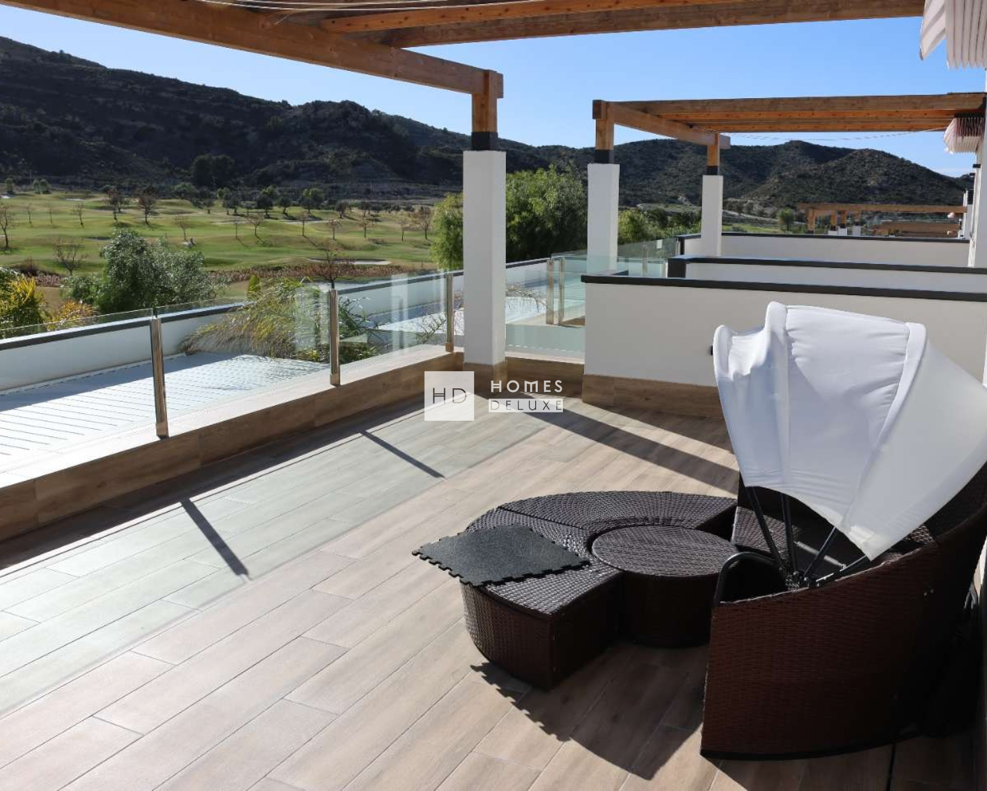 Découvrez cette magnifique villa en revente située au sein du prestigieux golf resort Font del Llop à Monforte del Cid. Une opportunité unique de vivre dans un emplacement privilégié avec une vue imprenable sur le parcours de golf et la nature environnante. Cette élégante villa dispose de 3 chambres spacieuses et de 3 salles de bains modernes, conçue avec le confort, la luminosité et l’espace comme priorités. La propriété offre plusieurs terrasses, un solarium ensoleillé et un joli jardin avec piscine privée, idéal pour profiter du style de vie méditerranéen tout au long de l’année. Grâce à sa situation en première ligne de golf, vous bénéficiez chaque jour d’une vue dégagée sur la verdure et d’un environnement particulièrement calme. La villa est vendue entièrement meublée, prête à être habitée immédiatement. Elle dispose également d’un vaste sous-sol pouvant être aménagé selon vos envies : chambres supplémentaires, salle de sport, espace hobby, bureau ou salle de détente… les possibilités sont infinies. Font del Llop est un golf resort exclusif et parfaitement entretenu, idéalement situé au cœur de la province d’Alicante. L’aéroport international d’Alicante et la gare AVE se trouvent à seulement 20 minutes en voiture. Les charmantes villes d’Alicante et d’Elche sont également facilement accessibles et méritent une visite. Les magnifiques plages naturelles d’Arenales, Alicante et Urbanova se situent à courte distance. Font del Llop est reconnu comme un parcours de golf prestigieux où il fait bon vivre toute l’année, profitant du climat méditerranéen doux, du calme et d’un art de vivre de qualité. Une propriété exceptionnelle pour ceux qui recherchent espace, confort et un emplacement unique en première ligne de golf. N’hésitez pas à nous contacter pour plus d’informations ou pour organiser une visite. Prix sous réserve de disponibilité.