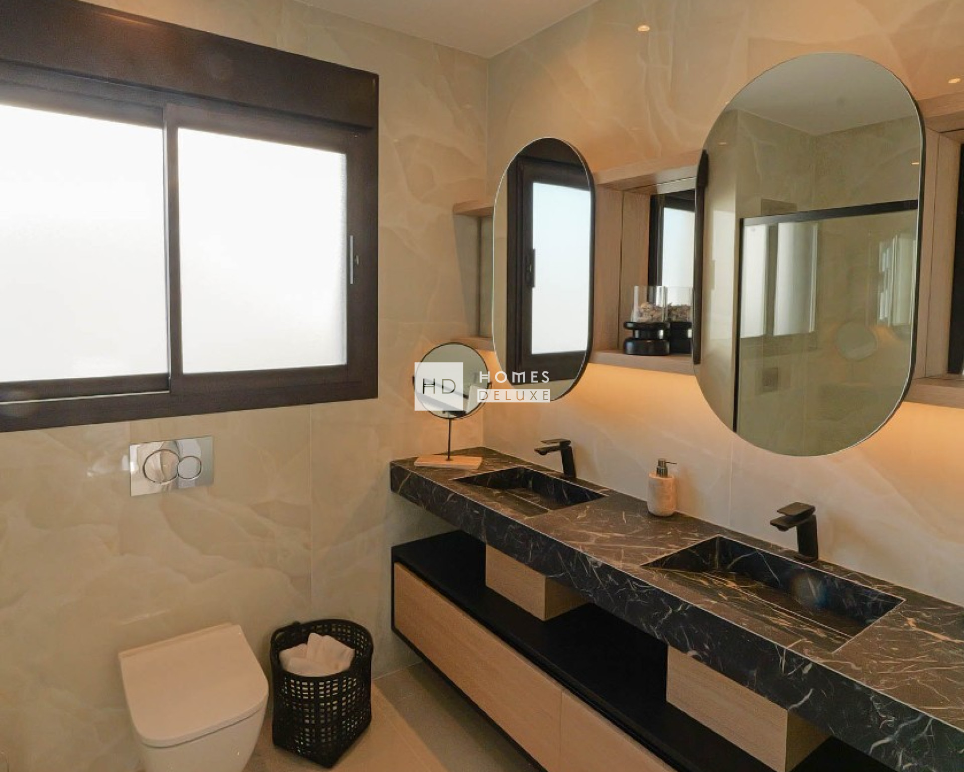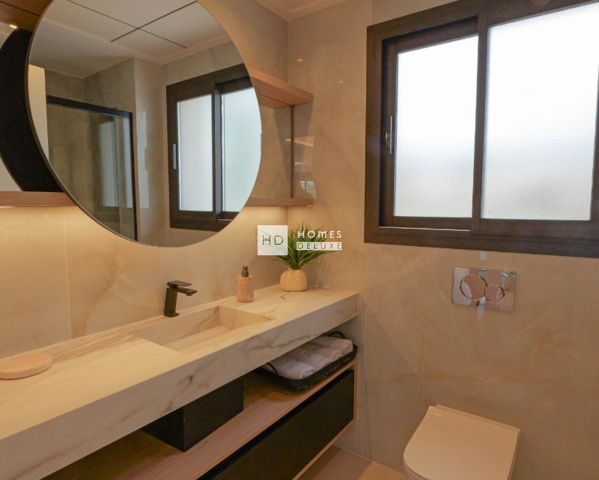La villa est de plain-pied et l'aménagement intérieur comprend un hall d'entrée menant au spacieux salon et salle à manger ouverts, avec de hauts plafonds et de grandes fenêtres dans tout l'espace, créant ainsi beaucoup de lumière naturelle et une sensation d'espace. Dans l'espace de vie principal se trouve une cuisine moderne de style américain, dans des tons noir et blanc élégants, avec des armoires hautes et basses. La grande chambre principale comprend une salle de bains attenante et un grand espace de rangement. Il y a deux autres chambres doubles de bonne taille avec des armoires encastrées et une salle de bains séparée pour les invités. Un escalier extérieur sur le côté de la propriété vous mène au solarium sur le toit, avec une tour/pergola qui vous permet de profiter à la fois du soleil et de l'ombre. Le solarium comprend également une pièce polyvalente qui peut être convertie en chambre supplémentaire, bureau, salle de sport, etc. selon vos besoins et vos exigences. Cette propriété est vendue entièrement meublée et décorée avec goût et raffinement.