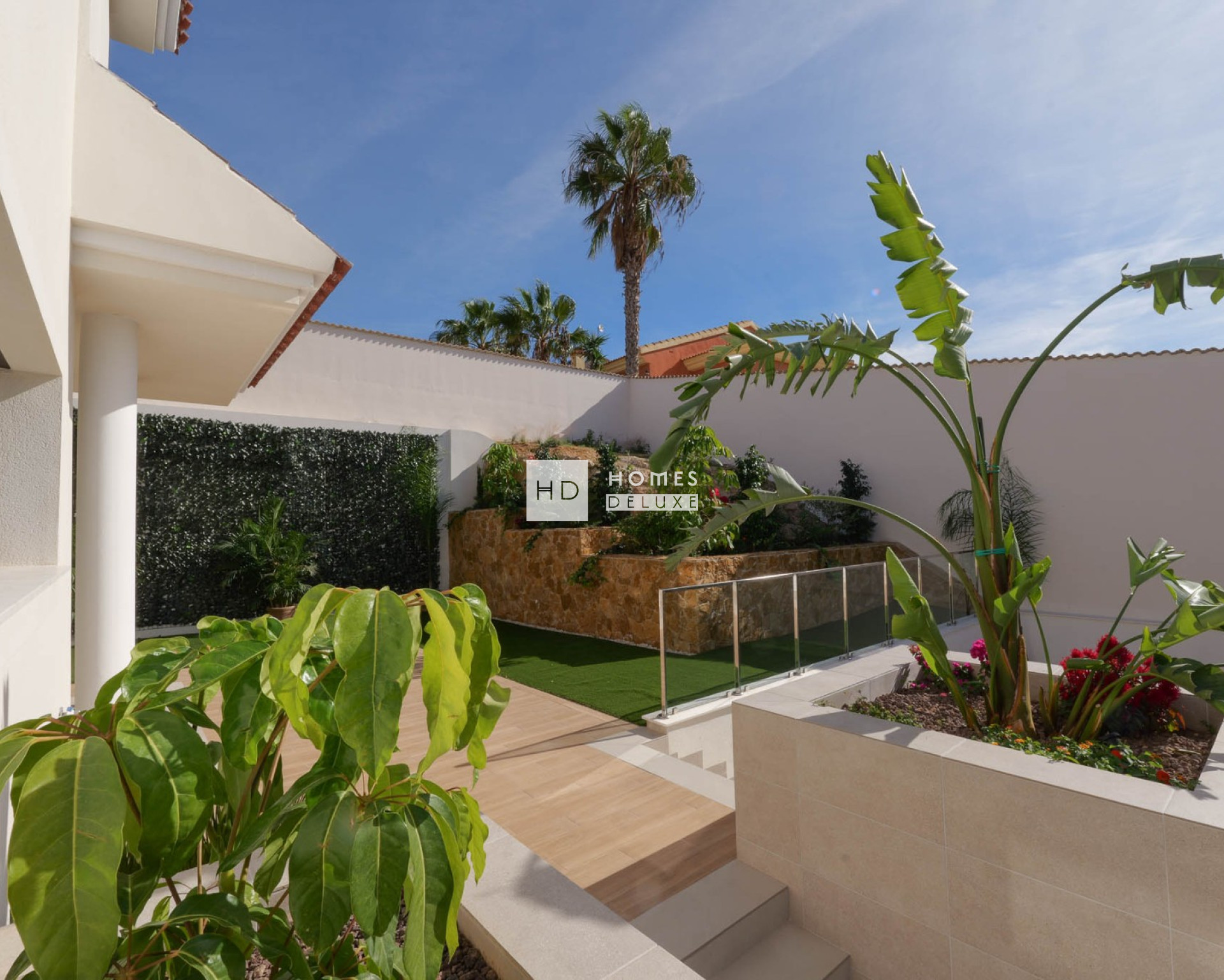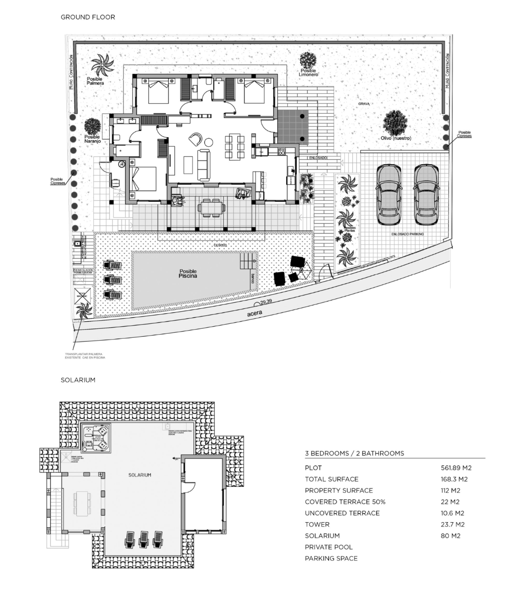 La villa est située sur un terrain de 562 m² qui vous permet de profiter d'un grand jardin privé avec une piscine privée accueillante, ainsi que d'une terrasse couverte avec des arches caractéristiques qui donnent une ambiance méditerranéenne. Le terrain comprend également un grand parking pour deux véhicules et, pour agrandir encore l'espace extérieur, un vaste solarium de 80 m² sur le toit permet de profiter au maximum de la vie en plein air en Espagne.