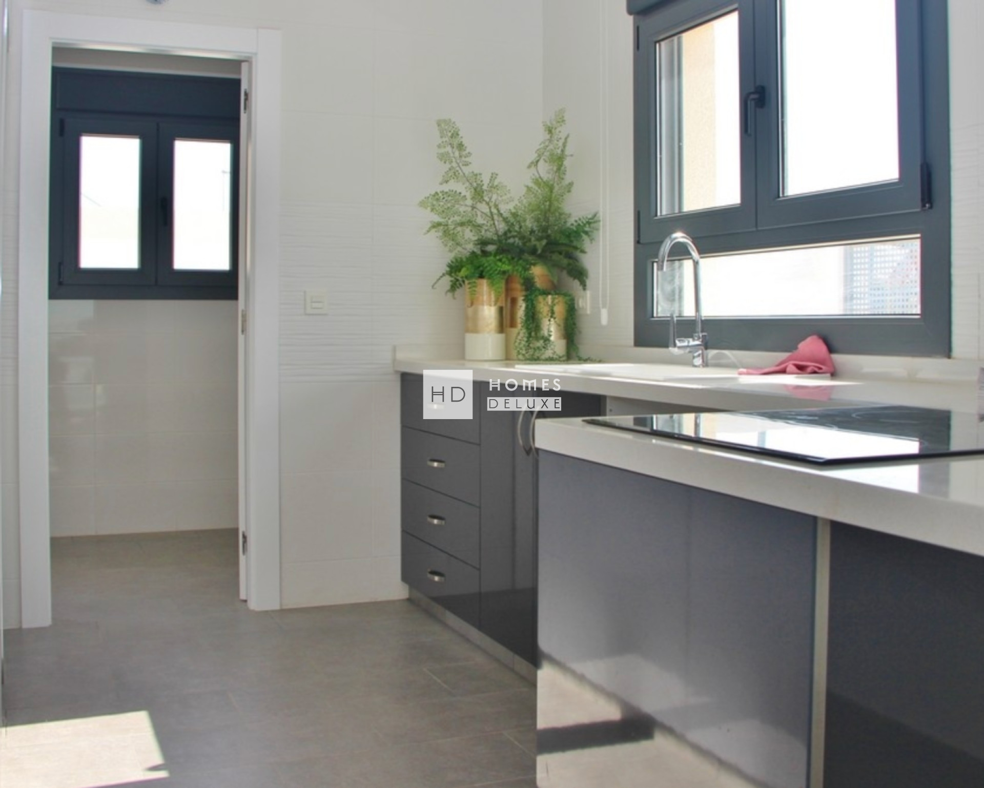 L'aménagement intérieur comprend un salon et une salle à manger ouverts, lumineux et spacieux, dotés de grandes baies vitrées donnant sur la terrasse et le jardin. Au sein de l'espace de vie principal se trouve une cuisine moderne de style américain, de grande qualité, avec un comptoir pour le petit-déjeuner et un choix de finitions, ainsi qu'une buanderie très pratique. La grande chambre principale dispose d'une salle de bains attenante ; il y a également deux autres chambres doubles de bonne taille et une salle de bains d'invités séparée. Les propriétés sont équipées d'une pré-installation pour la climatisation centralisée, d'un système de panneaux solaires photovoltaïques, du chauffage au sol dans les salles de bains, d'armoires encastrées dans toutes les chambres, d'un jardin paysager avec système d'irrigation, d'une piscine privée et d'un parking privé sur le terrain avec un portail d'entrée motorisé. Le constructeur propose un choix de carrelages pour les sols dans toute la maison ainsi que pour l'extérieur, et de carrelages muraux dans les salles de bains et la cuisine. Il est également possible d'opter pour un solarium sur le toit avec un débarras.