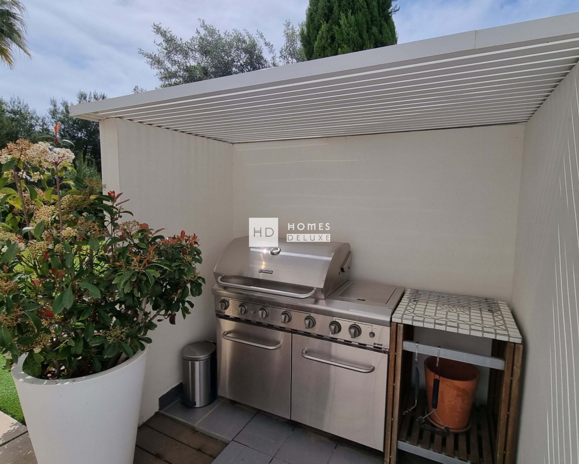 Bel appartement au rez-de-chaussée situé dans la communauté Encina. Avec 2 chambres à coucher et 2 salles de bains (possibilité de 3 chambres à coucher), une terrasse spacieuse, un jardin paysager et des vues ouvertes sur la zone verte. 2 places de parking privées et un espace de rangement sont inclus avec cet appartement. L'appartement est vendu partiellement meublé avec des appareils de haute qualité dans la cuisine ainsi que des meubles design dans le salon. L'appartement a été converti d'un appartement de 3 lits en un très spacieux appartement de 2 lits avec un salon ouvert et une salle à manger (ceci peut être inversé si nécessaire).BBQ extérieur et stockage dans le jardin privé. Emplacement très privé et calme avec orientation sud-ouest. Communauté fermée avec accès à deux piscines communes joliment aménagées.