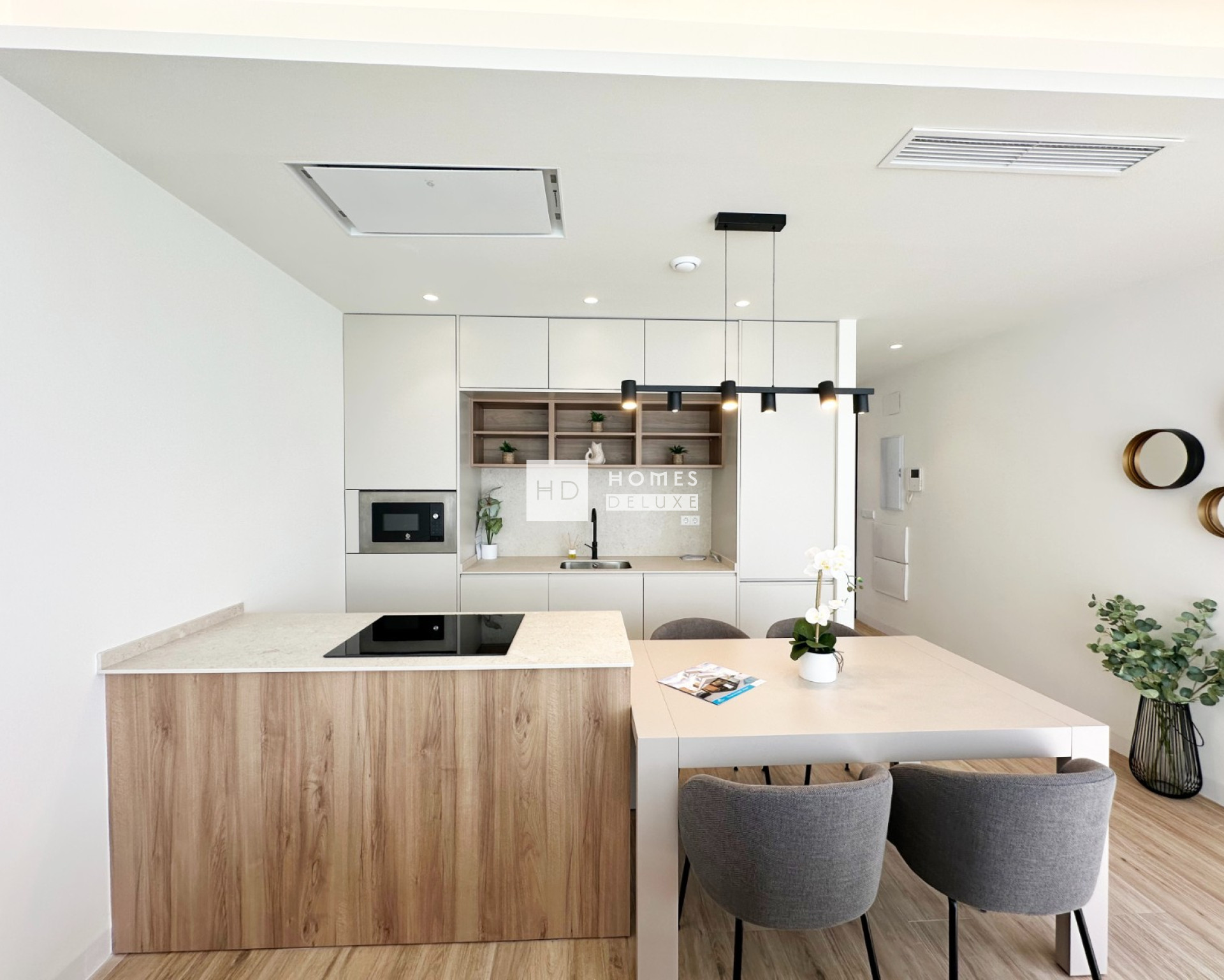 Les propriétés comprennent la climatisation, les appareils électroménagers de la cuisine (four, plaque de cuisson, hotte aspirante, réfrigérateur-congélateur et lave-vaisselle), un système d'interphone vidéo, des stores électriques, l'éclairage extérieur, un jardin paysager, une piscine privée, une douche extérieure et un parking privé sur le terrain.
