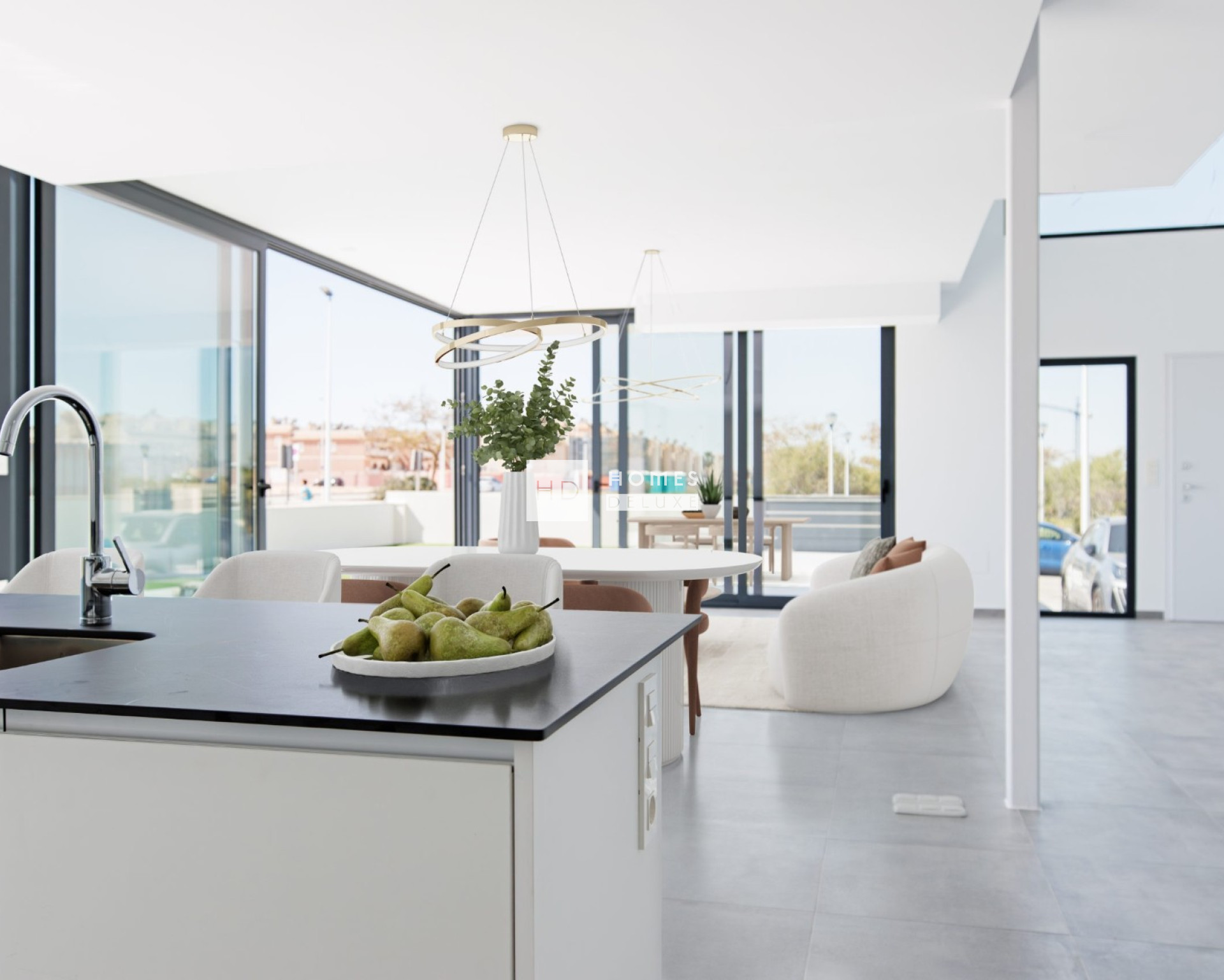 Les villas sont sur des parcelles de 331 m2 et la villa elle-même est distribuée sur deux étages avec 4 chambres à coucher, 3 salles de bains, a une distribution en double hauteur et est caractérisée par les grandes fenêtres, dont l'objectif principal est de capturer autant de lumière naturelle que possible pour obtenir une atmosphère confortable dans la maison.