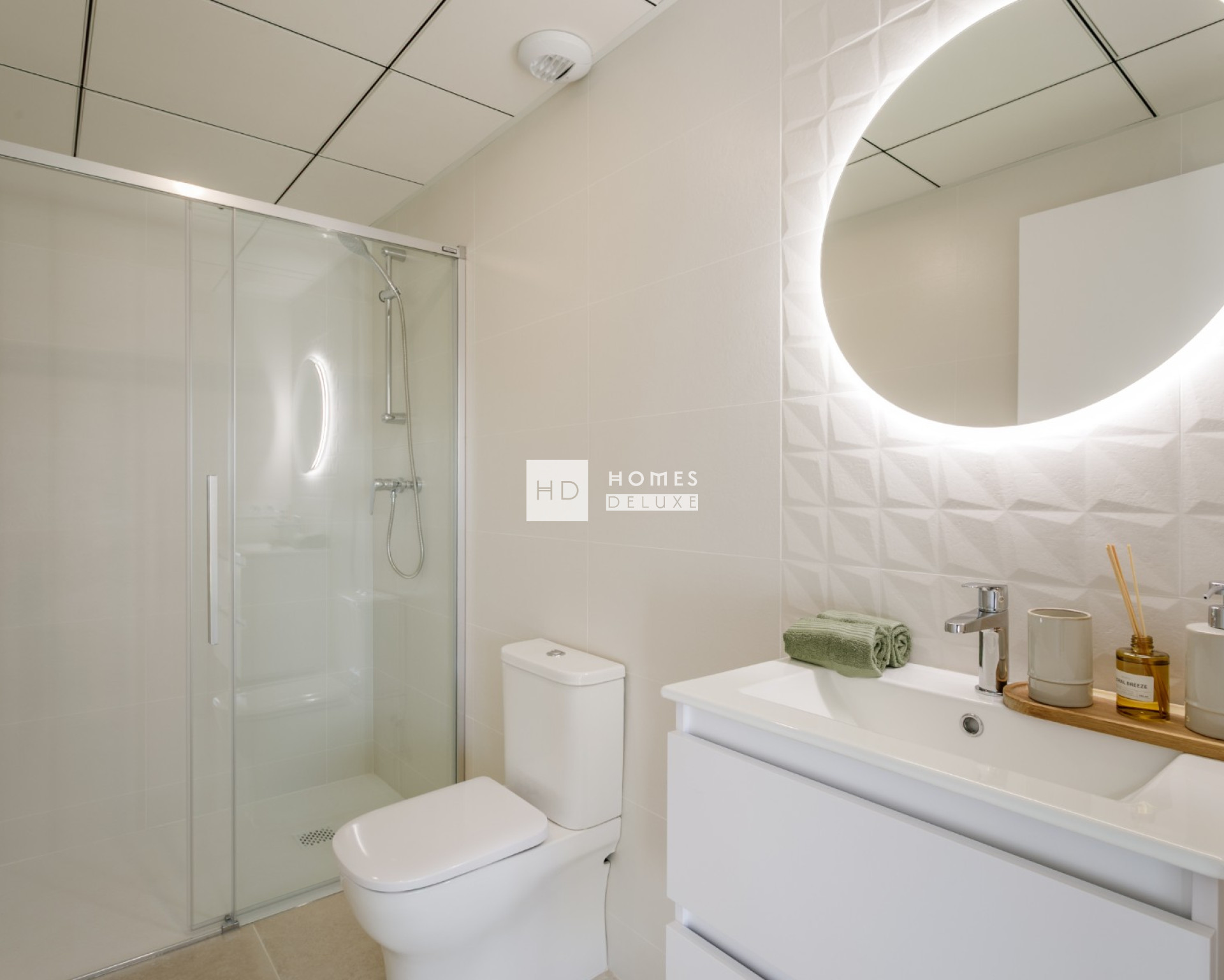 L'immeuble comprend des appartements avec 2 chambres et 2 salles de bains, des appartements au rez-de-chaussée avec un jardin privé avec gazon artificiel, et des penthouses avec 3 chambres et 2 salles de bains et un solarium privé. Toutes les propriétés bénéficient de grandes terrasses ensoleillées orientées sud-est donnant sur les espaces verts et les piscines communes.