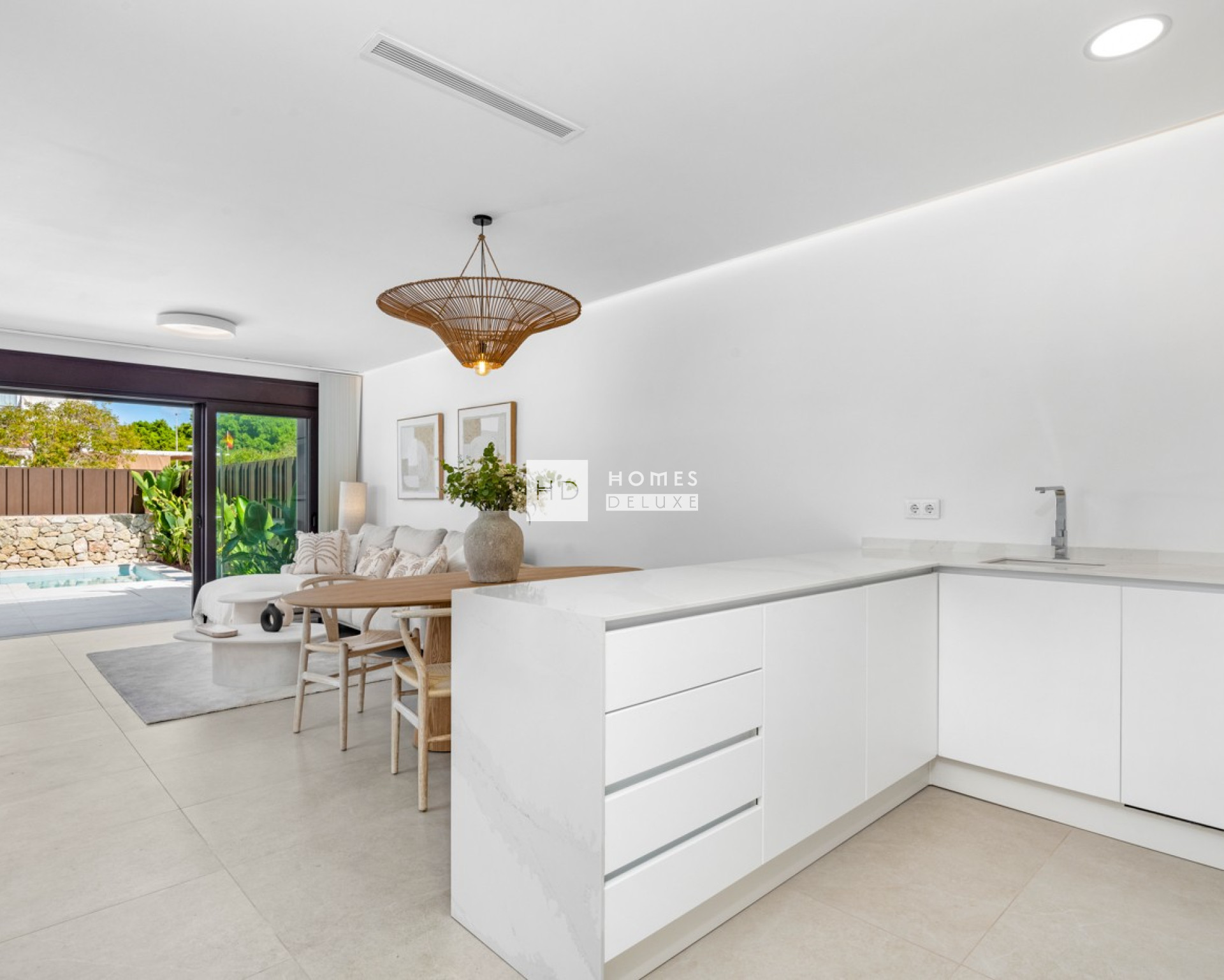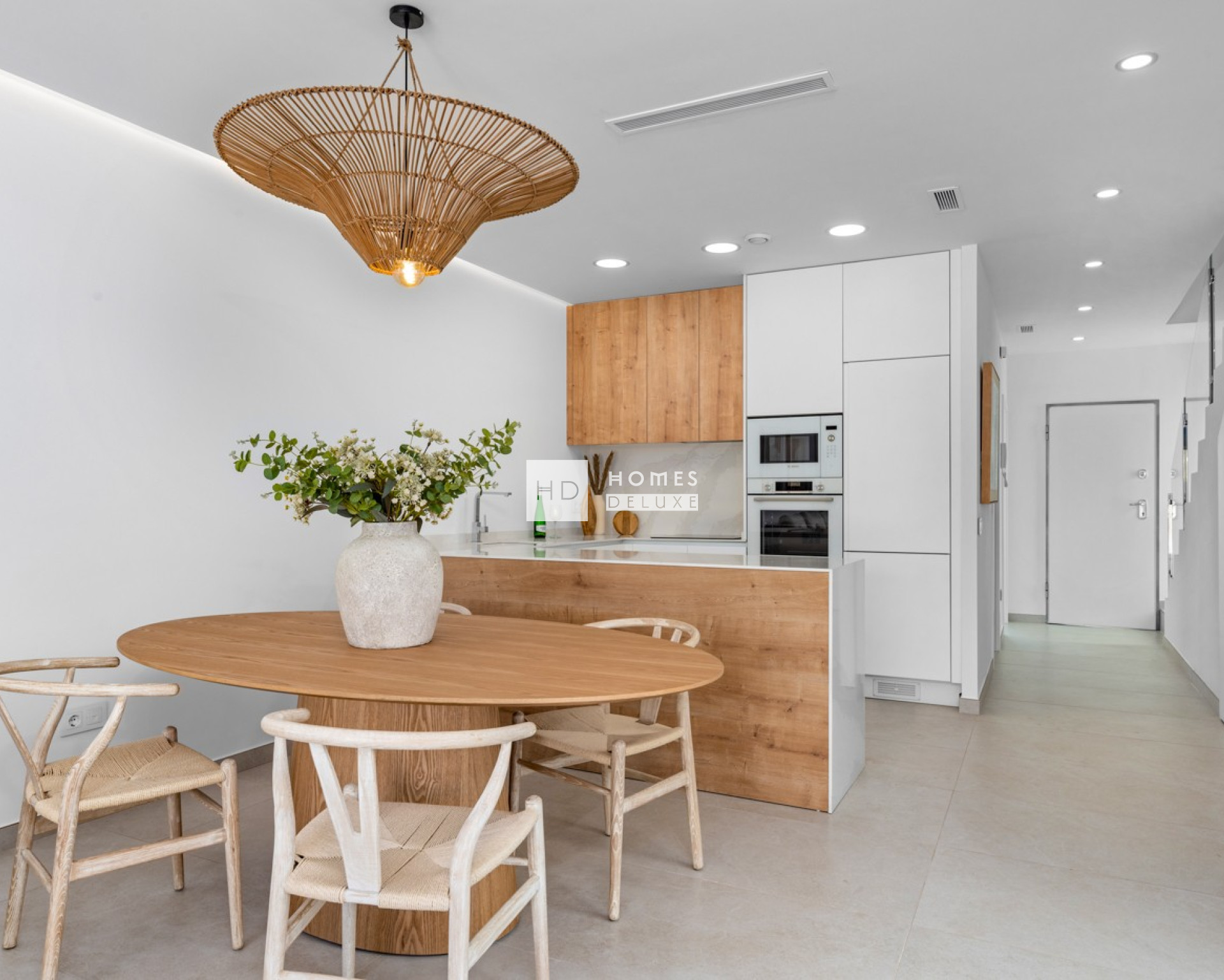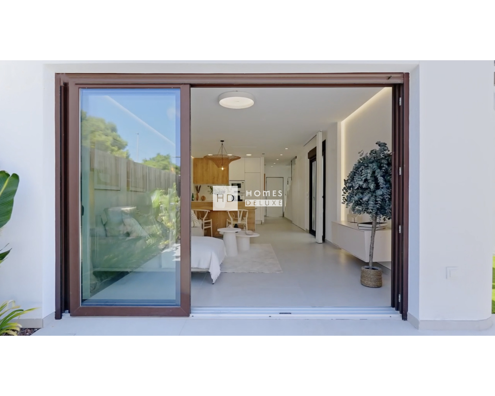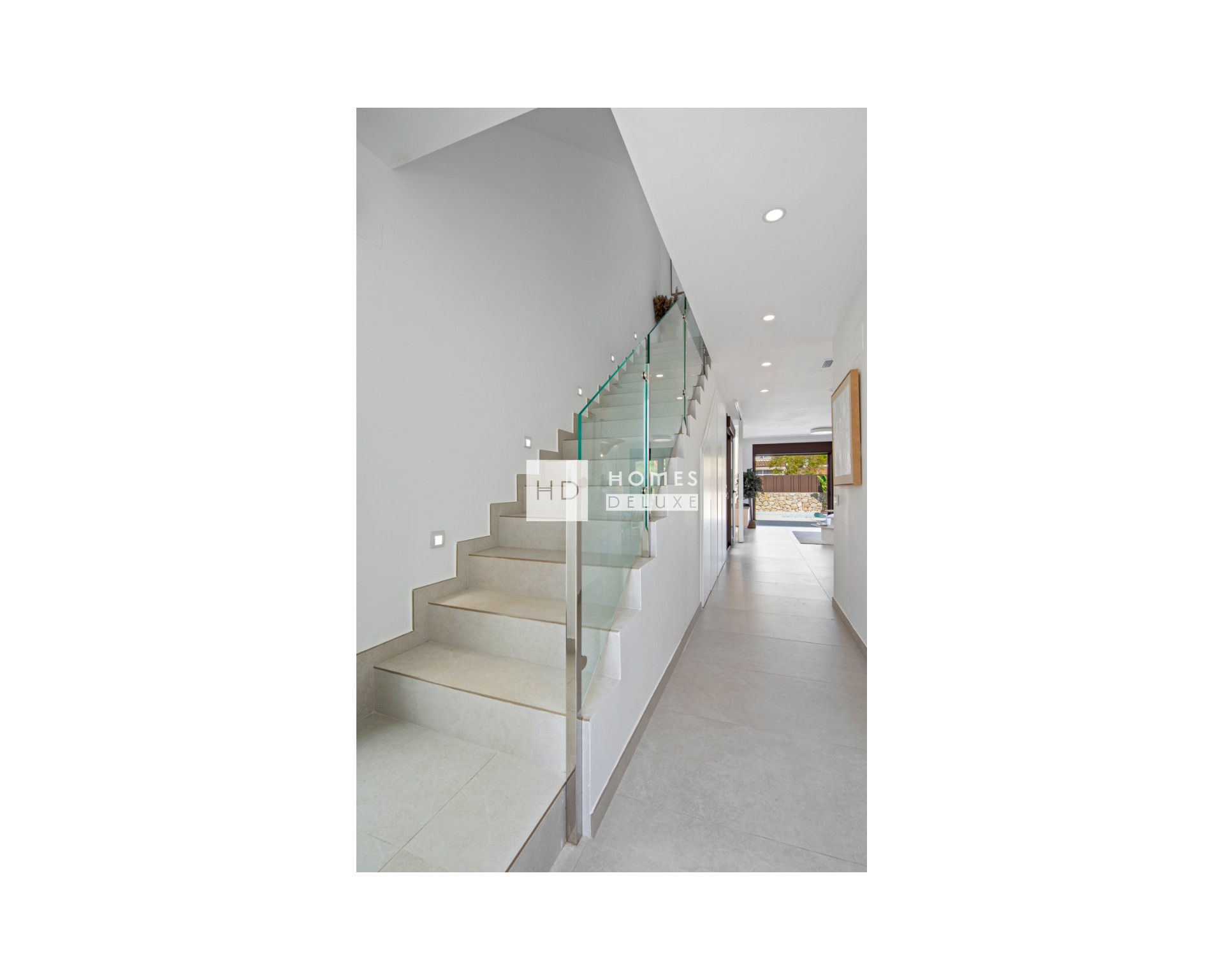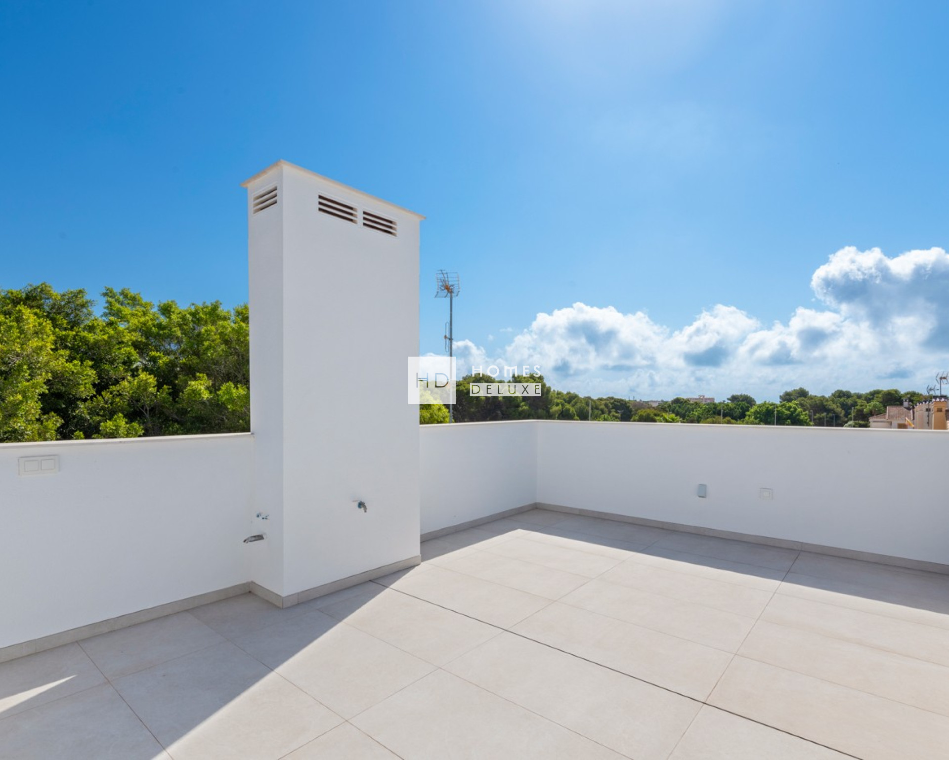 La villa est sur deux niveaux et la disposition intérieure comprend un hall d'entrée menant au spacieux salon ouvert et à la salle à manger avec de grandes portes-fenêtres donnant accès à la terrasse et au jardin, une cuisine moderne de style américain entièrement équipée, avec une buanderie séparée, le niveau du rez-de-chaussée a également une chambre double et une salle de bains séparée. L'escalier interne vous mène au premier étage avec deux autres chambres doubles, toutes deux avec salle de bain attenante, et l'une des chambres et le couloir ont accès à la terrasse ensoleillée privée de 15m2. L'escalier interne vous mène également au vaste solarium sur le toit de 27m2 pour profiter du soleil toute la journée. Le jardin et la terrasse ont beaucoup d'espace pour avoir des zones de détente autour de la piscine privée et des zones de repas en plein air pour recevoir la famille et les amis.