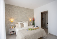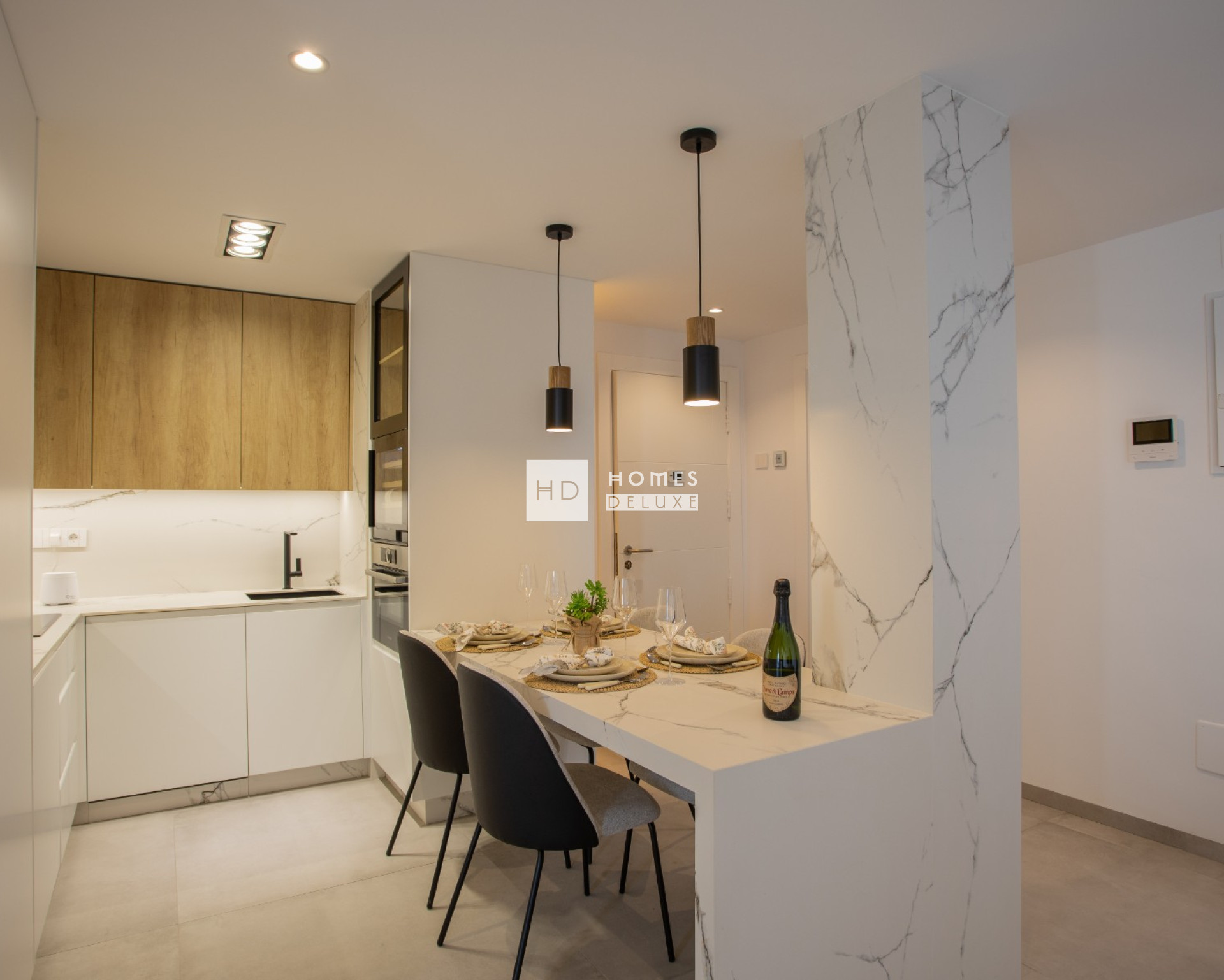 Het interieur bestaat uit een ruime open lounge en eetkamer met grote openslaande deuren naar het terras, volledig ingerichte Amerikaanse keuken, grote slaapkamer met en-suite badkamer, nog twee tweepersoons slaapkamers en een aparte gastenbadkamer. De woningen zijn voorzien van airconditioning, vloerverwarming in de badkamers, keukenapparatuur van Bosch of Siemens, LED-verlichting binnen en buiten, elektrische rolluiken en een ondergrondse privéparkeerplaats met een oplaadpunt voor een elektrisch voertuig en een berging. De penthouse appartementen komen ook inclusief het volgende op het privé solarium, toilet, pergola, elektrische barbecue, zomerkeuken, kunstgras, buitendouche en pre-installatie voor een jacuzzi. Er is de optionele extra van een hoge kwaliteit meubilair pakket voor alle soorten appartementen.