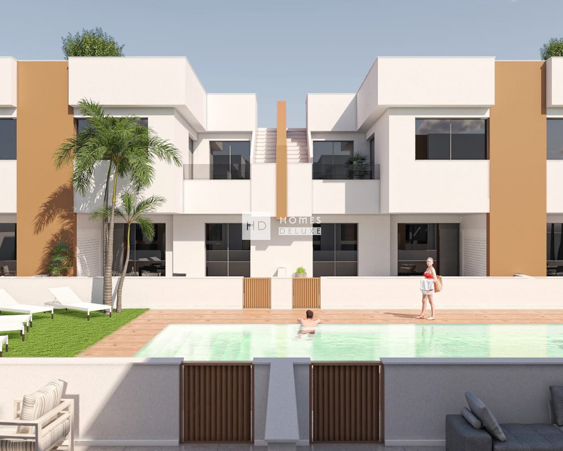 Het complex is een afgesloten gemeenschap met prachtige gemeenschappelijke tuinen en een groot gemeenschappelijk zwembad voor het plezier van de bewoners. Er is keuze uit appartementen met 2 slaapkamers op de begane grond met een eigen tuin en appartementen met 3 slaapkamers op de bovenste verdieping met een eigen solarium op het dak.