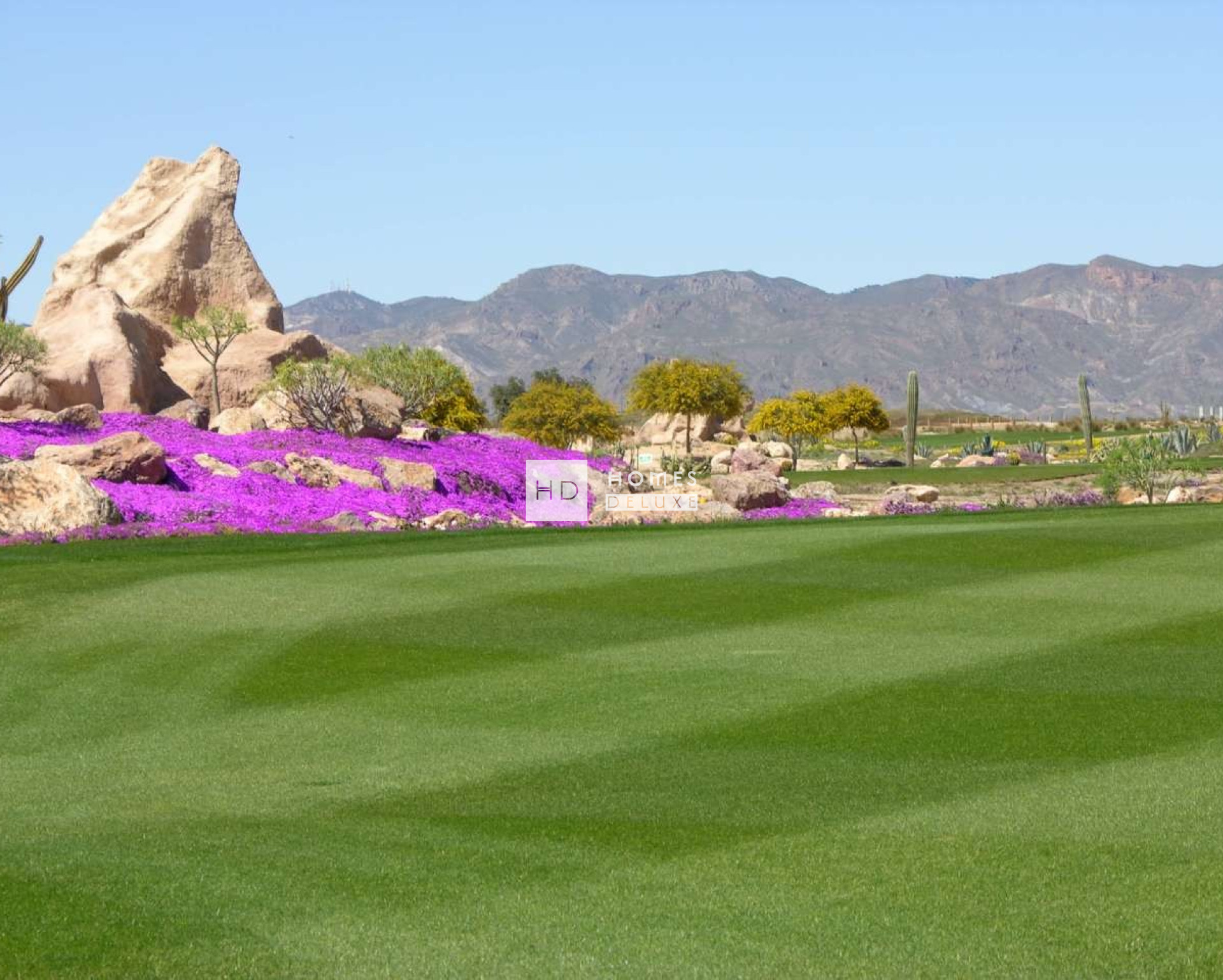 Gelegen in Europa's enige bekroonde familie-resort en woestijngolfbaan, biedt deze prachtige vier slaapkamer villa een zeldzame combinatie van luxe en rust. Met zijn benijdenswaardige ligging met uitzicht op de golfbaan, is deze villa een ware parel voor wie comfort en elegantie zoekt in een uitzonderlijke omgeving. De villa beschikt over vier ruime slaapkamers en vijf badkamers, waarvan drie en-suite. Het hart van het huis is de open woon- en eetruimte, die naadloos doorloopt naar een charmant overdekt terras—perfect voor dineren in de buitenlucht en om gasten te ontvangen. De keuken is volledig uitgerust met moderne apparatuur, wat zorgt voor gemak en stijl. Een geavanceerd ventilatiesysteem zorgt ervoor dat de beneden- en begane grond koel en fris blijven, terwijl airconditioning in de woonkamer en alle slaapkamers het hele jaar door comfort biedt. Op de eerste verdieping heeft de luxe master bedroom directe toegang tot een privé dakterras en lounge, waar u kunt genieten van een panoramisch uitzicht op de omgeving. Twee extra slaapkamers met en-suite badkamers bevinden zich op de begane grond, waarvan één direct toegang heeft tot het ruime terras en het sprankelende zwembad van 8 x 4 meter. Een vierde slaapkamer op deze verdieping wordt bediend door een aparte badkamer, wat flexibiliteit en gemak biedt voor familie of gasten. De benedenverdieping biedt een grote ruimte ontworpen voor ontspanning en vermaak. Deze verdieping omvat een volledig uitgeruste speelkamer, een bioscoopzaal voor gezellige filmavonden, een wijnkelder voor liefhebbers, een kantoor voor thuiswerken, een bijkeuken en een vijfde badkamer. Elk detail van dit huis is zorgvuldig doordacht om het leven en comfort van de bewoners te verbeteren. Buiten bieden de privé tuin en het zwembad de perfecte plek om te ontspannen, omringd door weelderig groen. Met een eigen parkeerplaats, ruime terrassen en een perceel van 775 m², biedt deze villa een balans tussen ruime woonmogelijkheden, zowel binnen als buiten. Desert Springs is meer dan alleen een woning—het is een levensstijl. De combinatie van prachtige architectuur, eersteklas voorzieningen en adembenemende uitzichten maakt deze woning een ideaal toevluchtsoord voor gezinnen en golfliefhebbers. Of u nu ontspant bij het zwembad of geniet van een ronde golf op de kampioenschapsgolfbaan, deze villa belooft een buitengewone woonervaring in een van de meest unieke resorts van Europa. Prijzen onder voorbehoud van beschikbaarheid. Neem contact met ons op voor meer informatie.