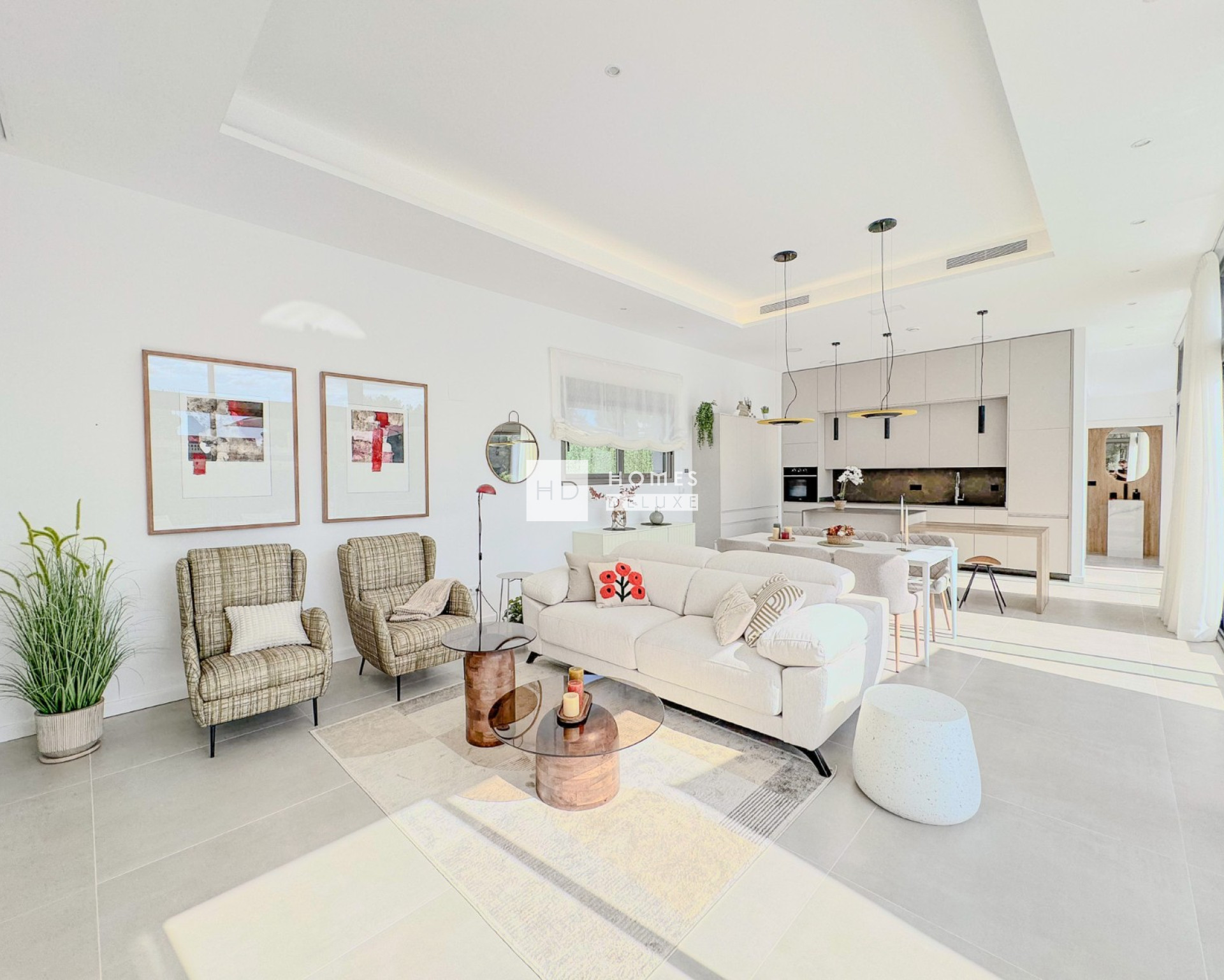 De villa's zijn ook ontworpen om optimaal gebruik te maken van de binnenruimtes, de lay-out bestaat uit een hal die leidt naar de lichte en ruime open lounge en eetkamer met extra grote ramen waardoor er een maximale natuurlijke lichtinval is in het hele pand en die uitkomt op het buitenterras en het zwembad. Binnen de belangrijkste leefruimte is een volledig ingerichte Amerikaanse keuken met centraal eiland en modern lijnmeubilair. De woning beschikt ook over een aparte wasruimte en gastentoilet. De indrukwekkende hoofdslaapkamer bestaat uit een grote slaapkamer met en-suite badkamer en inloopkast / kleedruimte bekleed met planken, laden en opknoping ruimte in ondoorzichtige kristallijne afwerking of semi doorschijnend. Er zijn nog twee ruime tweepersoonsslaapkamers, alle slaapkamers met openslaande deuren naar het hoofdterras, en er is ook een aparte gastenbadkamer. Aan de zijkant van het huis is een trap die leidt naar een handige opslagruimte van 41m2.