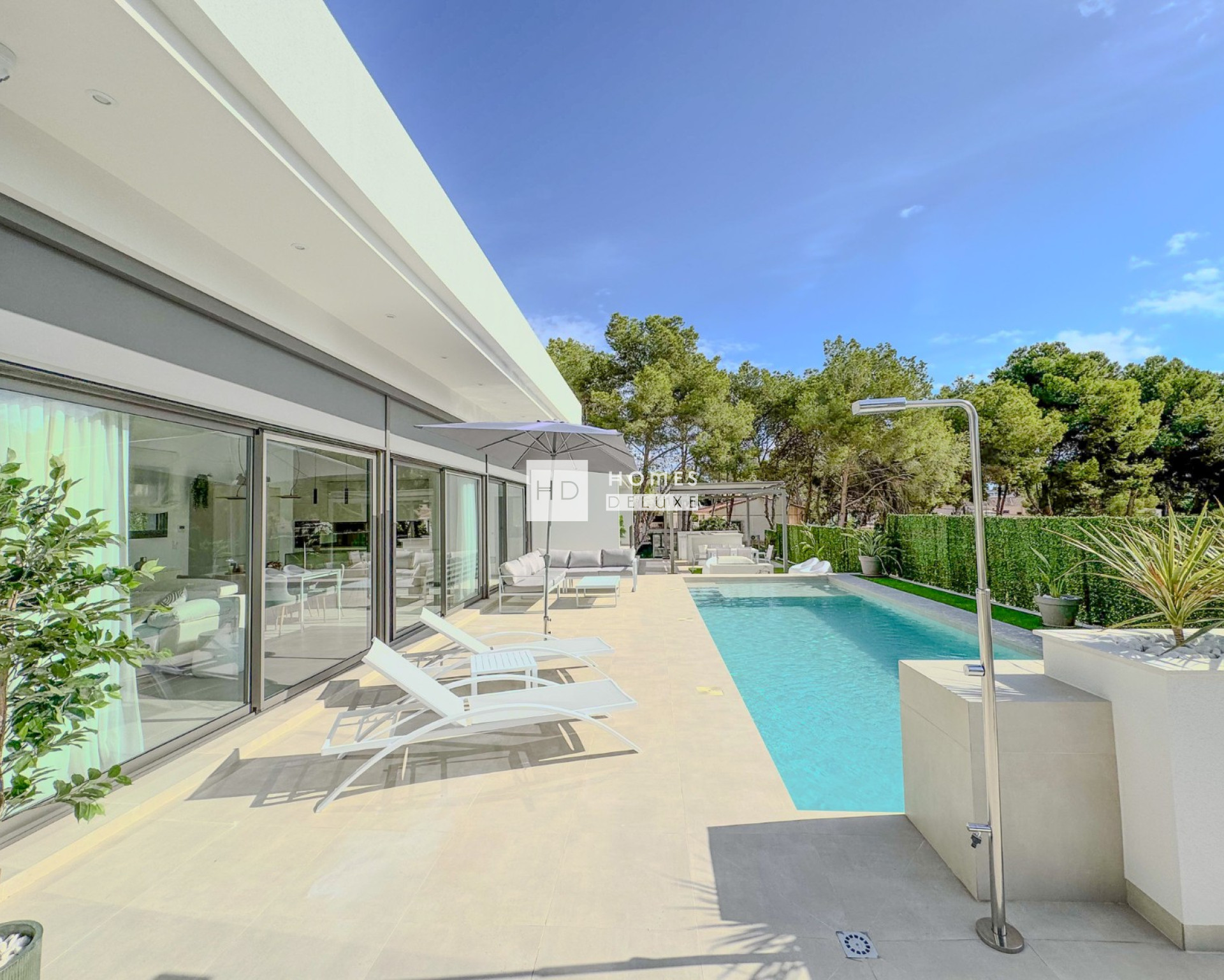 Exclusieve gloednieuwe vrijstaande villa's met 3 slaapkamers en 3 badkamers op kavels van 800 meter in het centrum van Pinar de Campoverde (Alicante), een stad gelegen op een beboste heuvel, op slechts 7 km van de prachtige stranden van de Costa Blanca met uitzicht op de Middellandse Zee en met alle voorzieningen op loopafstand.