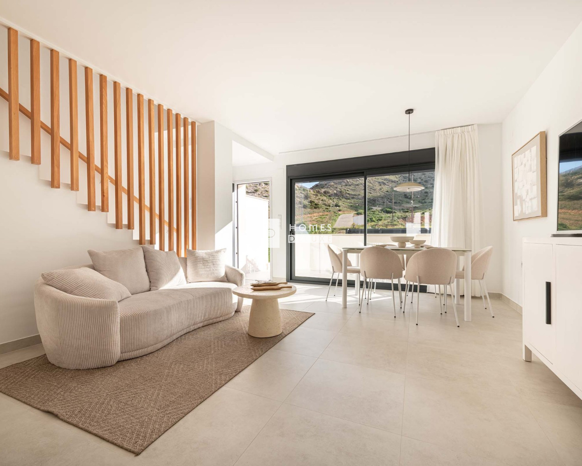 Elke woning beschikt over veel buitenruimte met een solarium op het dak, terrassen, patio's en er is ook privéparkeergelegenheid op elk perceel. Bovendien kunnen de bewoners genieten van de mooi aangelegde gemeenschappelijke ruimtes met kunstgras en een groot gemeenschappelijk zwembad.