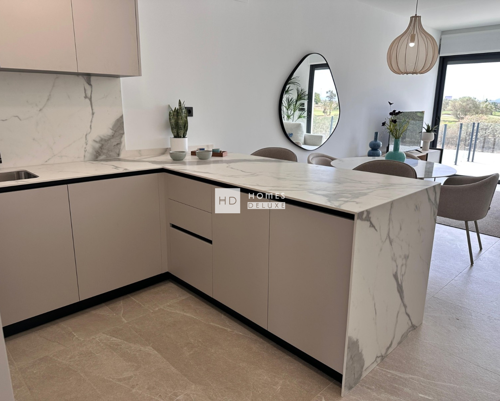 De appartementen in fase 1 zijn ontworpen om functionaliteit, comfort en een onovertroffen uitzicht op de golfbaan en de Mar Menor te bieden. Deze eerste fase omvat in totaal 30 appartementen, verdeeld over woningen met 2 en 3 slaapkamers, elk met 2 badkamers. Een van de meest opvallende aspecten is hun oriëntatie en interieur, ontworpen om de natuurlijke lichtinval te maximaliseren, de dwarsventilatie te verbeteren en het interieur visueel te verbinden met de omgeving. Bovendien hebben de appartementen op de begane grond een privétuin, wat de mogelijkheden voor buitenplezier vergroot en extra ruimte biedt zonder aan privacy in te boeten. Elk appartement bevindt zich in een gebouw met twee liften, waardoor toegankelijkheid vanaf elk niveau gegarandeerd is, en ze zijn allemaal voorzien van een parkeerplaats. De woningen worden gecompleteerd door ruime terrassen met plantenbakken die geïntegreerd zijn in de architectuur van het gebouw, vrij uitzicht op de golfbaan van La Serena en de Mar Menor, en aangelegde gemeenschappelijke ruimten, die zorgen voor een rustige en aangename omgeving.