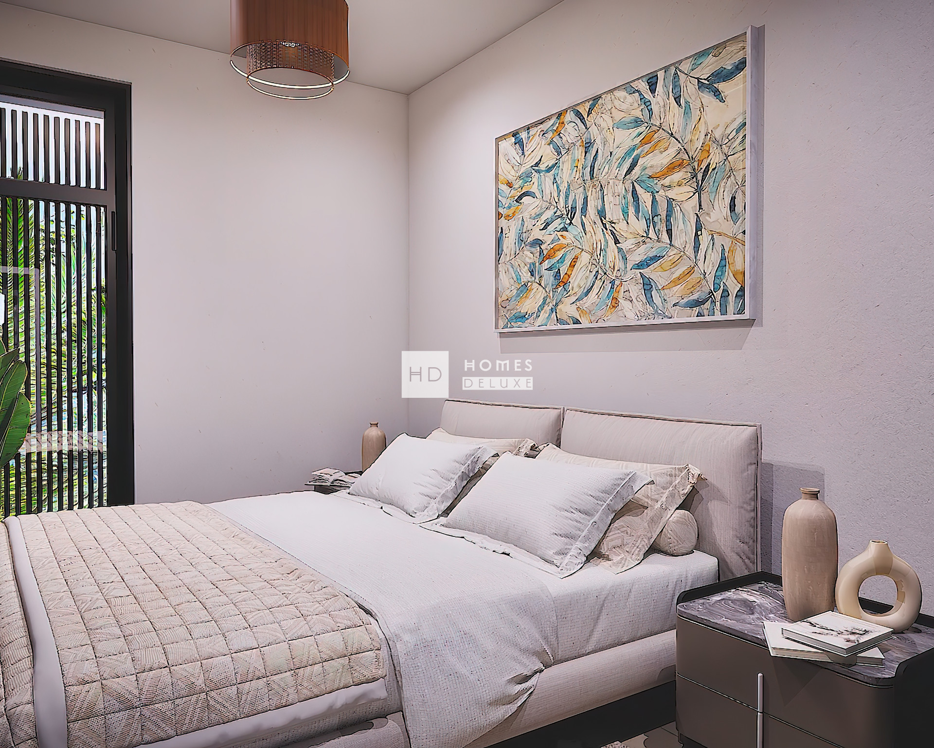 De woningen zijn voorzien van pre-installatie voor airconditioning, keukenapparatuur (oven, inductiekookplaat, afzuigkap, magnetron, koelkast met vriesvak en vaatwasser), inbouwkasten in alle slaapkamers, een ondergrondse parkeerplaats en een berging.