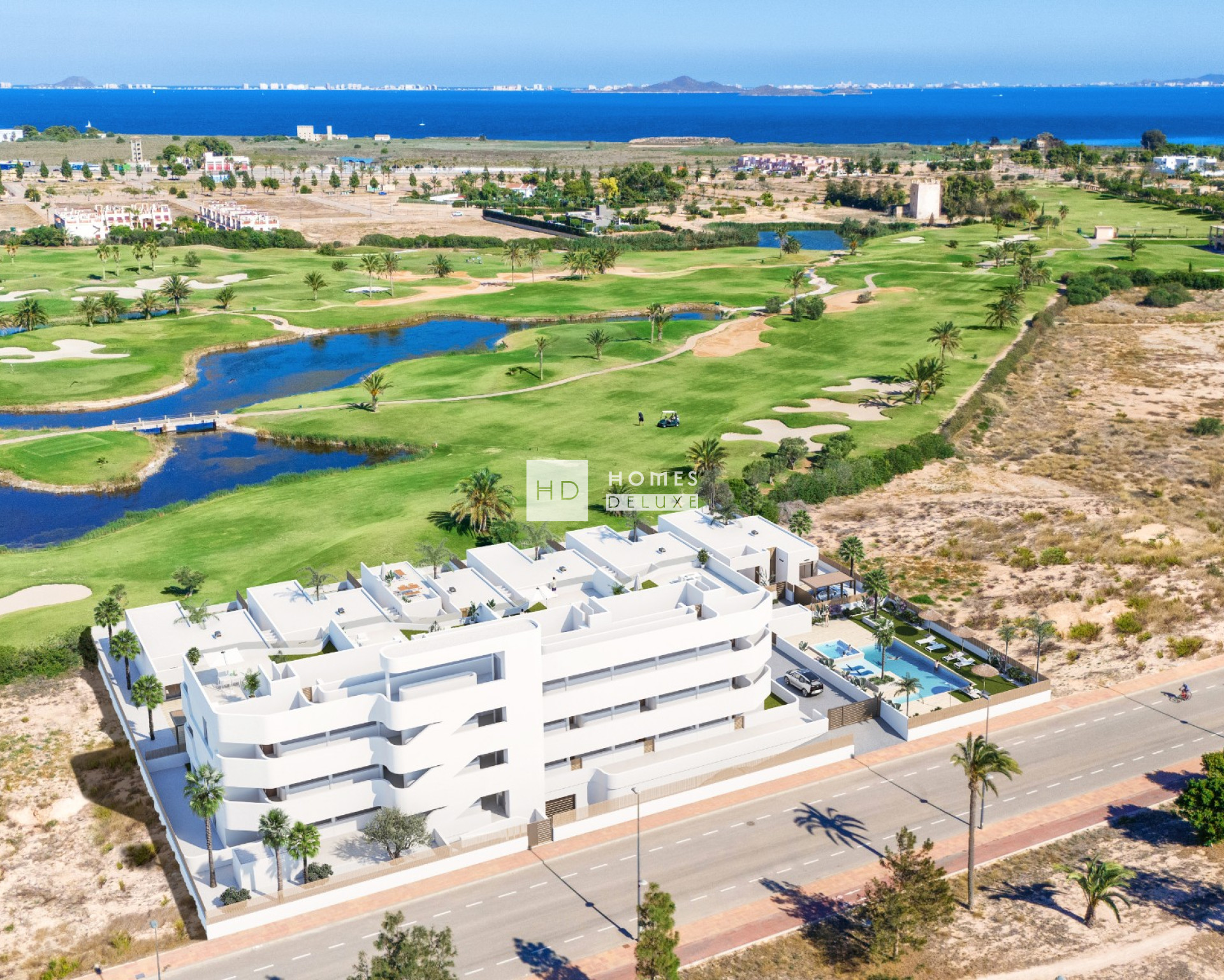De woningen combineren modern design, kwaliteit en functionaliteit, en de onovertroffen locatie biedt een prachtig uitzicht op de golfbaan en de zee van Mar Menor. De appartementen beschikken over een prachtige gemeenschappelijke tuin met een groot gemeenschappelijk zwembad voor volwassenen en kinderen en een jacuzzi-spa voor de bewoners.