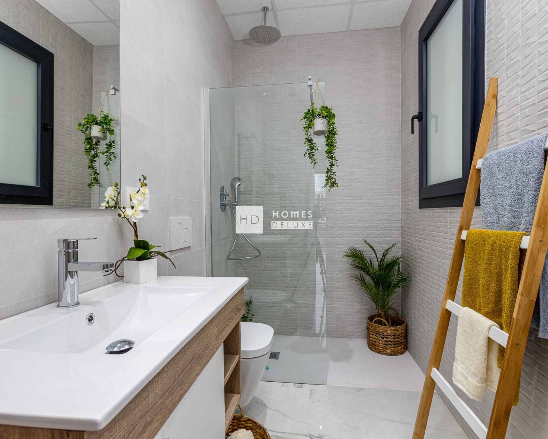 De indeling van het interieur bestaat uit een hal die leidt naar de ruime open woon- en eetkamer met grote ramen die uitkomen op het privéterras. In de woonkamer bevindt zich een volledig ingerichte moderne keuken in Amerikaanse stijl met een kookeiland. De ruime hoofdslaapkamer heeft een en-suite badkamer, er is nog een andere ruime tweepersoonsslaapkamer en een aparte gastenbadkamer. Op het ruime terras kunt u genieten van het buitenleven met plekken om te ontspannen en buiten te eten in het heerlijke Spaanse klimaat. De penthouse-opties breiden de buitenruimte nog verder uit met een buitentrap op het terras die u naar het uitgebreide dakterras leidt.