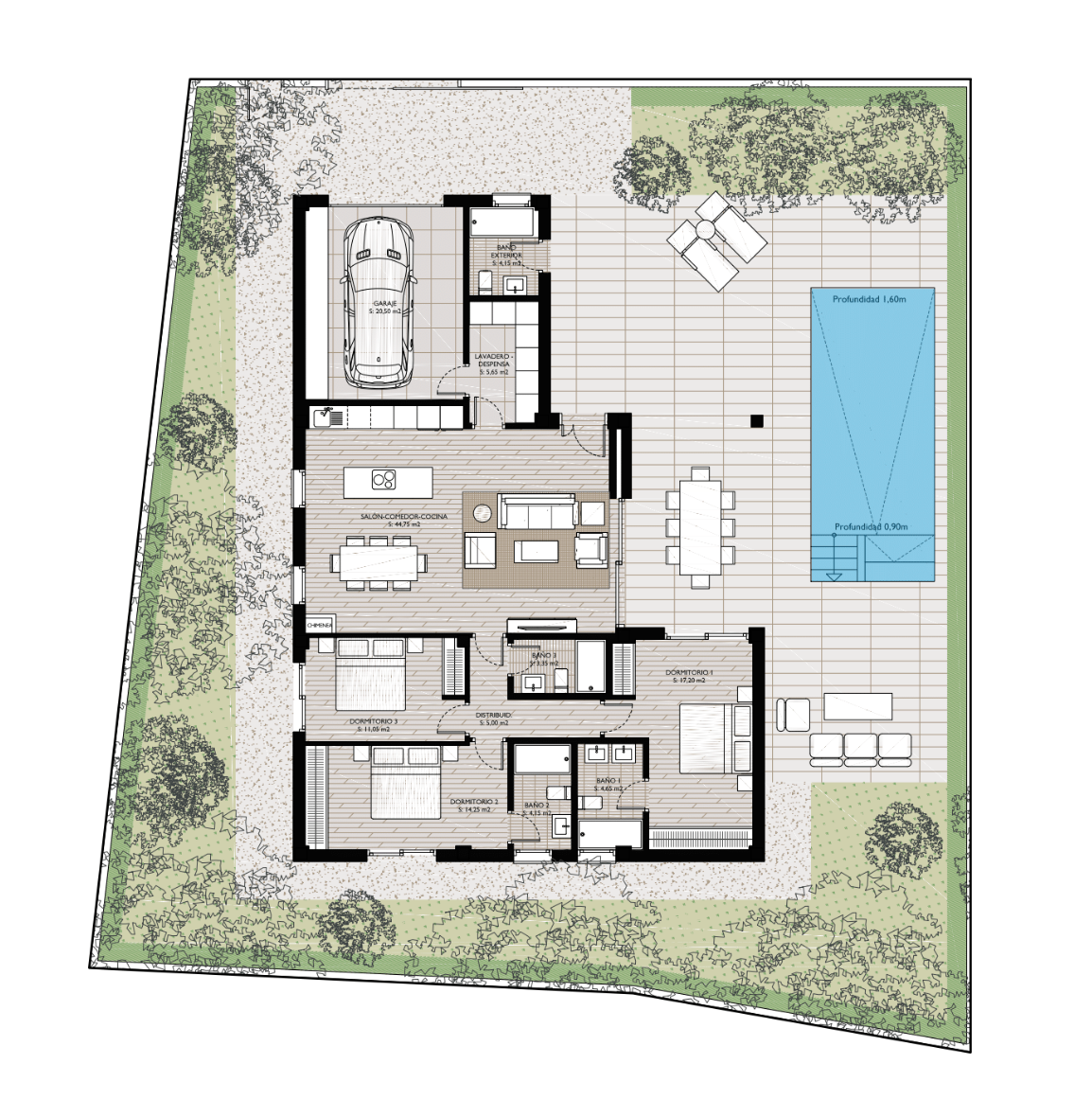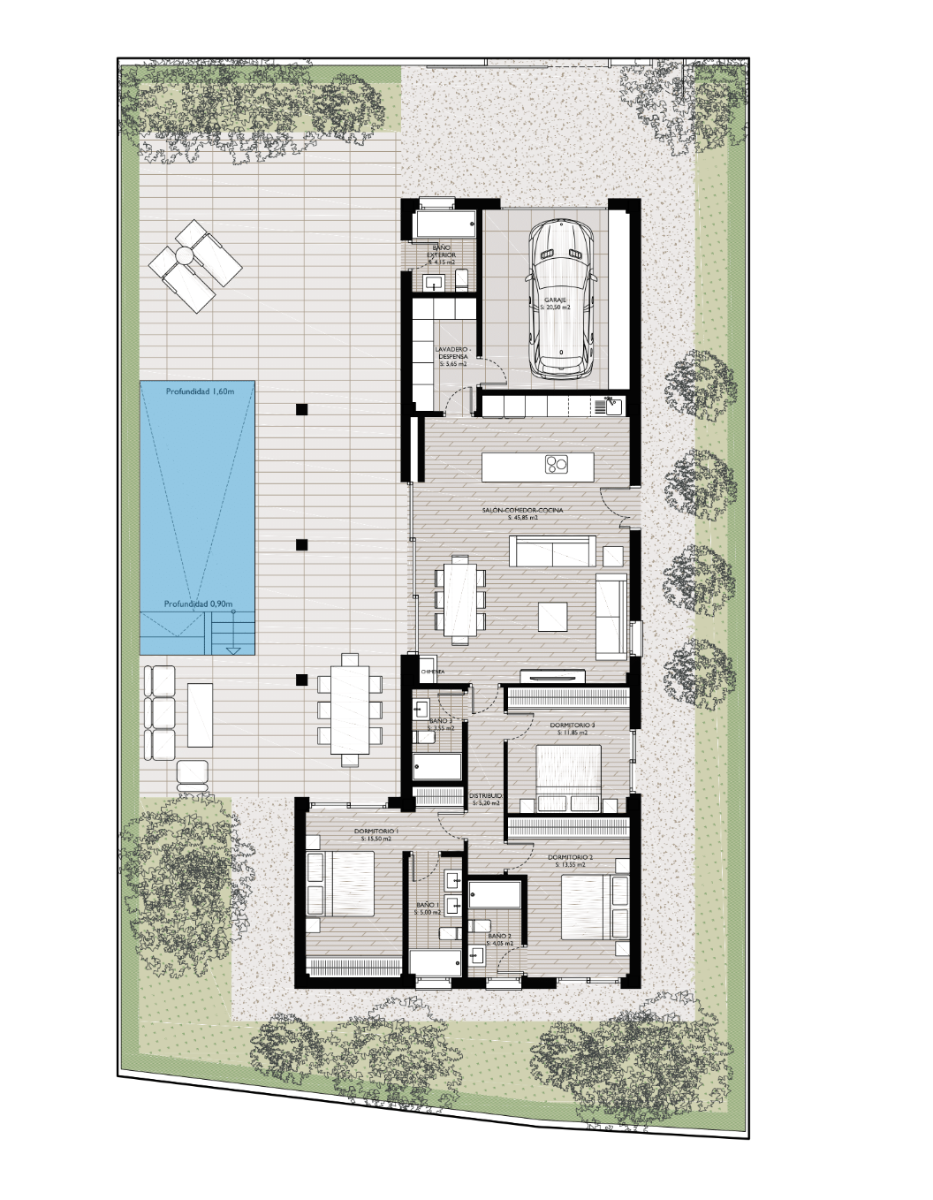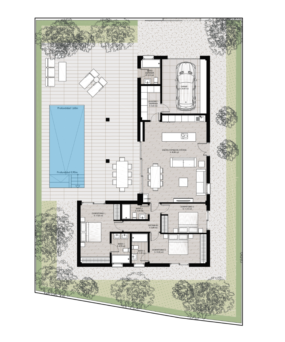 Deze villa's vormen een prachtige boutique-collectie van slechts vier luxe woningen en combineren tijdloze mediterrane architectuur met een strakke en ultramoderne interieurafwerking. De villa's hebben een royale perceelgrootte van meer dan 500 m² met veel ruimte om optimaal te genieten van het buitenleven in Spanje, met een privétuin, ruime terrassen en een groot privézwembad, perfect om te ontspannen en te genieten met familie en vrienden. Een andere toegevoegde bonus is de privégarage, waar uw auto veilig en beschermd tegen de hitte kan staan.