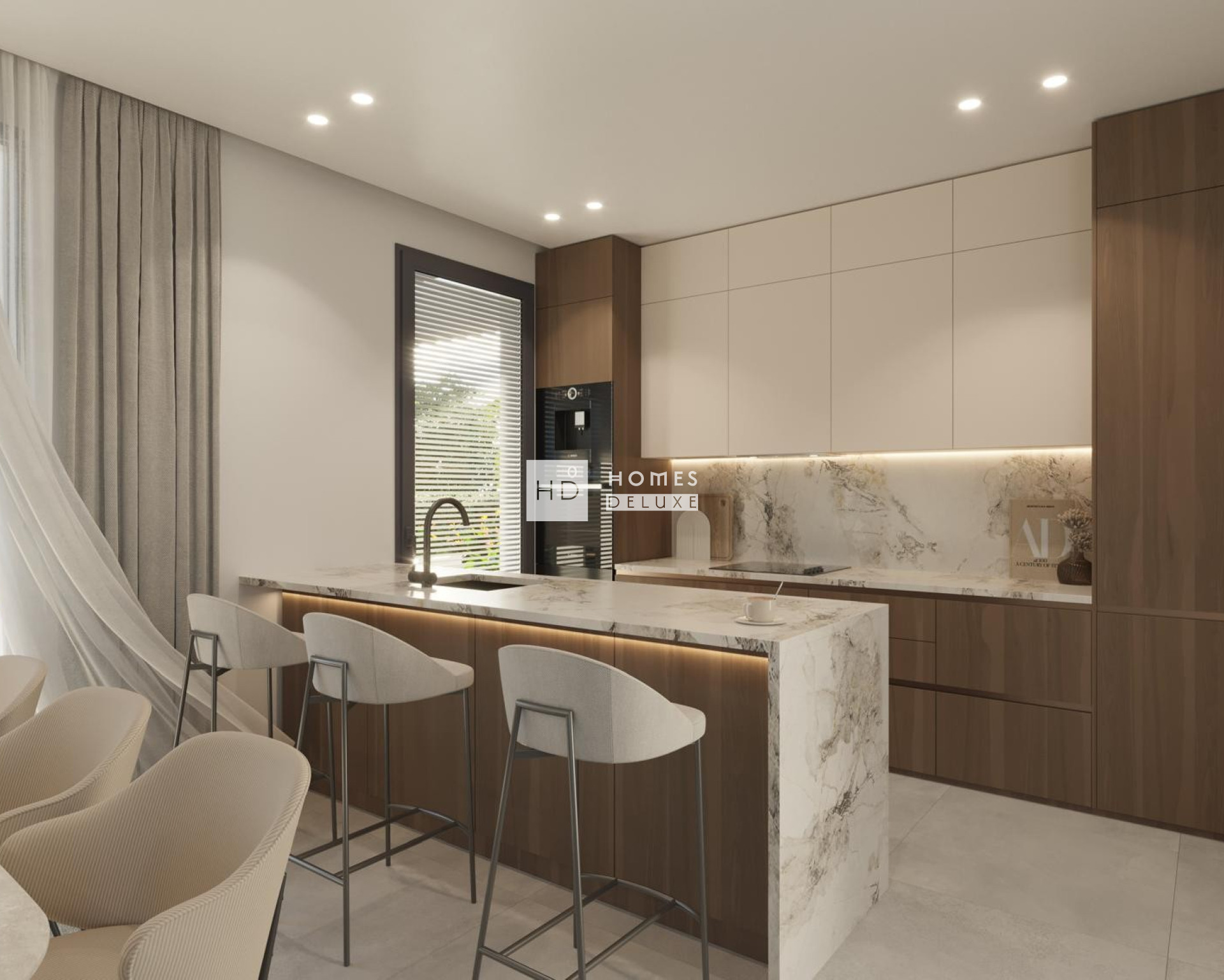Het team van architecten en interieurontwerpers heeft aan elk detail van de woning gedacht om gebruik te maken van technologie en de bewoonbaarheid, duurzaamheid en energie-efficiëntie van elke woning te verbeteren. Elke woning is het resultaat van het zoeken naar de beste oplossingen op het gebied van comfort, welzijn en gemak. Dit specifieke model is de grootste villa in het project met 5 slaapkamers en 4 badkamers. De indeling van het interieur bestaat uit een lichte en ruime open woon- en eetkamer met kamerhoge ramen die ervoor zorgen dat u in de hele villa veel natuurlijk licht heeft en toegang heeft tot het terras en de tuin. In de belangrijkste leefruimte bevindt zich een volledig ingerichte moderne keuken in Amerikaanse stijl met een kookeiland. Op de begane grond bevinden zich ook twee tweepersoonsslaapkamers en een aparte gastenbadkamer.