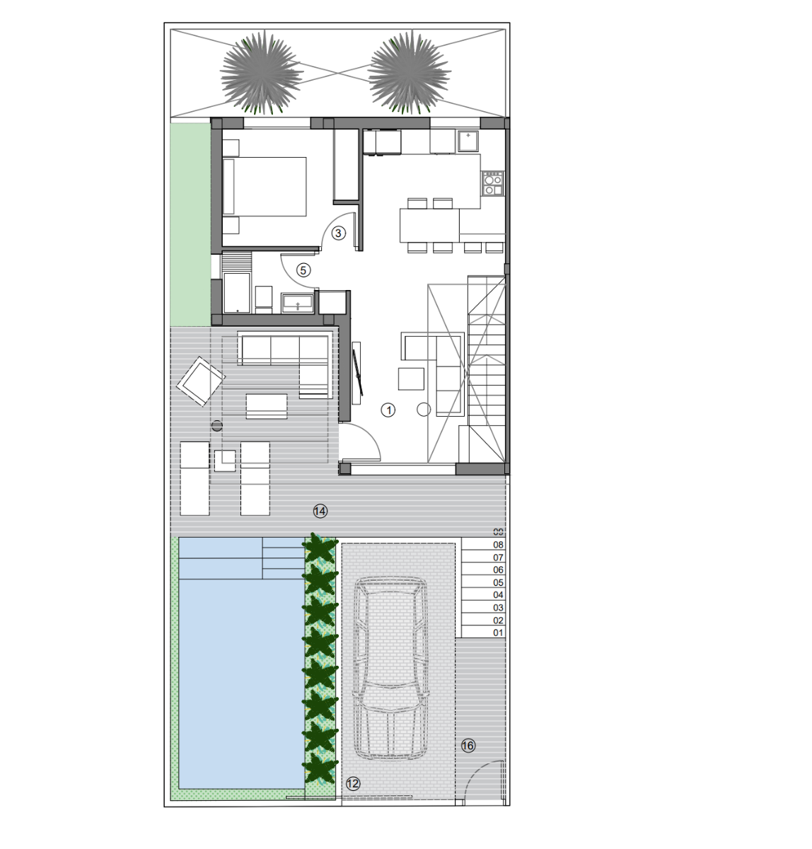 Het team van architecten en interieurontwerpers heeft aan elk detail van de woning gedacht om gebruik te maken van technologie en de bewoonbaarheid, duurzaamheid en energie-efficiëntie van elke woning te verbeteren. Elke woning is het resultaat van het zoeken naar de beste oplossingen op het gebied van comfort, welzijn en gemak. Dit specifieke model is de halfvrijstaande villa in het project met 3 of 4 slaapkamers en 3 badkamers. De indeling van het interieur bestaat uit een lichte en ruime open woon- en eetkamer met kamerhoge ramen die ervoor zorgen dat u in de hele villa veel natuurlijk licht heeft en toegang heeft tot het terras en de tuin. In de belangrijkste leefruimte bevindt zich een volledig ingerichte moderne keuken in Amerikaanse stijl met een ontbijtbar. Op de begane grond bevinden zich ook een tweepersoonsslaapkamer en een aparte gastenbadkamer.