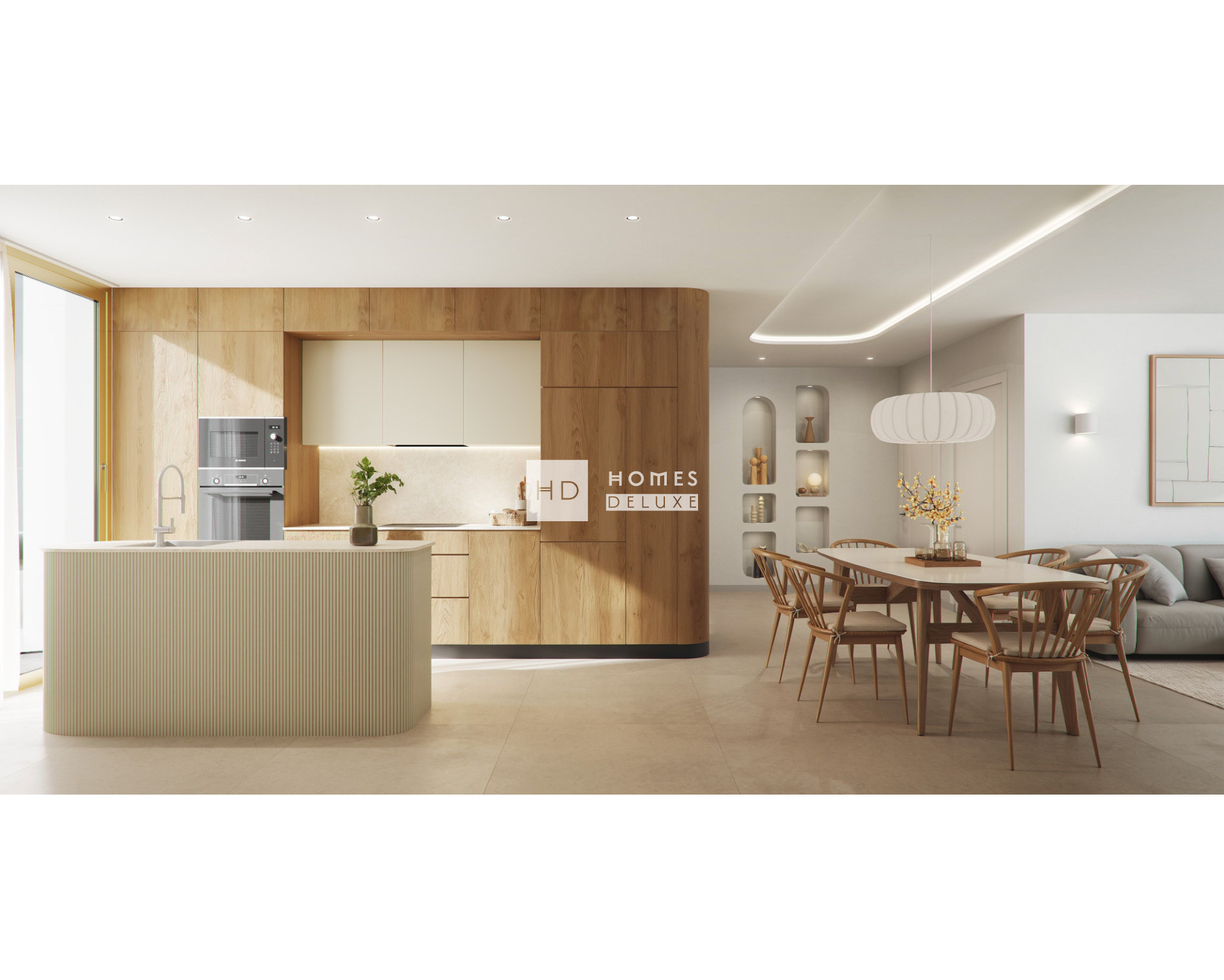In totaal zijn er 7 villa's met 3 slaapkamers en 2 badkamers. De indeling van het interieur bestaat uit een lichte en ruime open woon- en eetkamer met grote ramen aan weerszijden van de ruimte die uitkomen op beide terrassen. In de belangrijkste leefruimte bevindt zich een stijlvolle, moderne keuken in Amerikaanse stijl met een kookeiland. De indrukwekkende hoofdslaapkamer heeft een en-suite badkamer en een kleedruimte, evenals een patiodeur die toegang geeft tot het hoofdterras. Er zijn nog twee ruime tweepersoonsslaapkamers en een aparte gastenbadkamer. U kunt de leefruimte verder uitbreiden met de handige kelder van 105 m² tot 133 m², afhankelijk van uw wensen en behoeften. Naast de prachtige privétuin, grote terrassen en uitnodigende privézwembad, beschikt de buitenruimte ook over een groot dakterras van 54 m² om de hele dag van de zon te genieten en het prachtige uitzicht te bewonderen. De woningen zijn voorzien van een elektrische kookplaat en afzuigkap in de keuken, inbouwkasten en elektrische rolluiken in alle slaapkamers, LED-verlichting binnen en buiten, en een privézwembad.