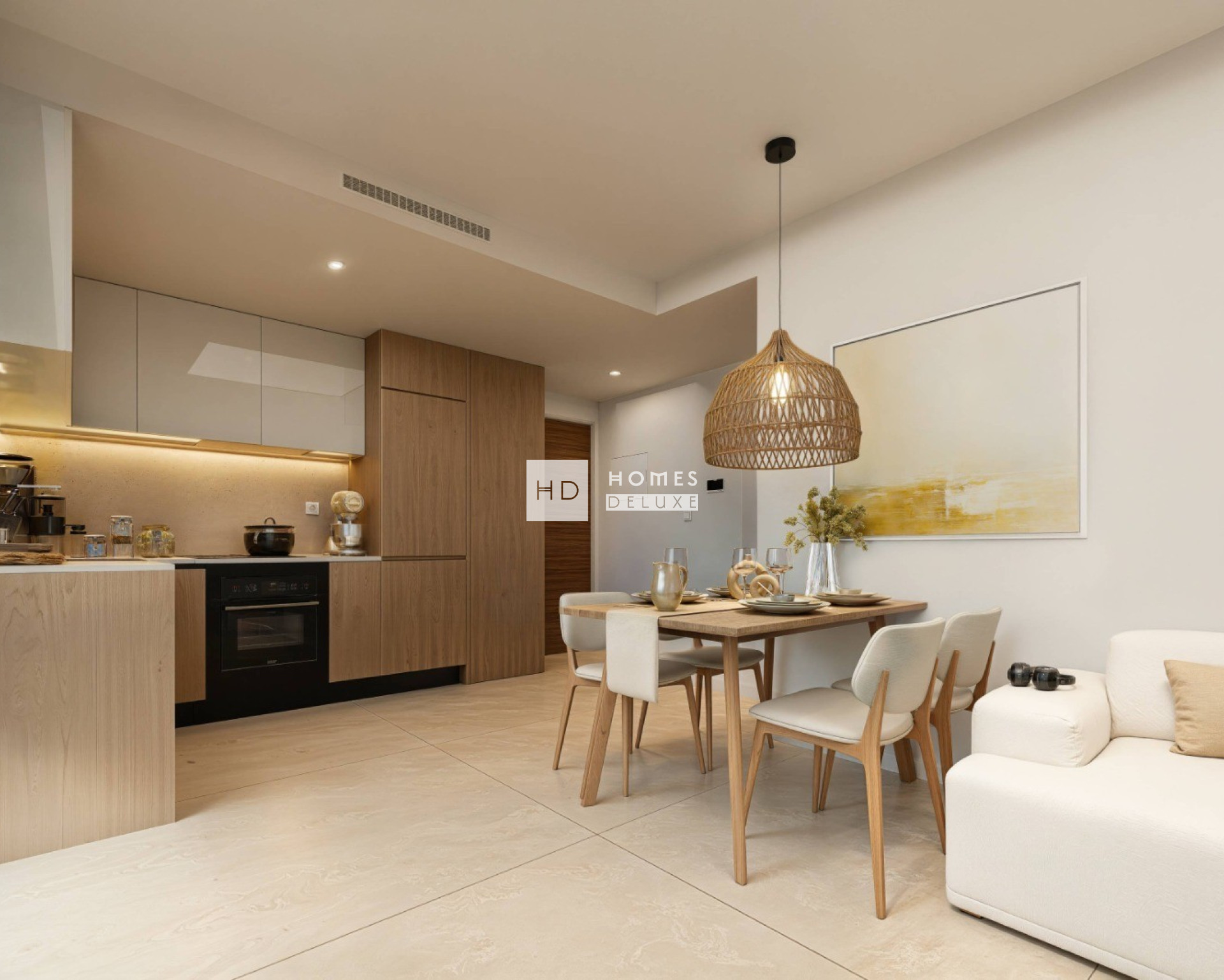 Het gebouw telt 7 verdiepingen en is ontworpen in een prachtige eigentijdse stijl. Het exclusieve penthouse valt op omdat het de enige woning op zijn eigen verdieping is, met een privézwembad en barbecueplaats, ideaal voor wie op zoek is naar extra privacy en luxe. De indeling van het interieur bestaat uit een lichte en ruime open woon- en eetkamer met grote ramen die uitkomen op het ruime terras. In de belangrijkste leefruimte bevindt zich een volledig ingerichte moderne keuken in Amerikaanse stijl, inclusief hoge en lage kasten met een laminaatafwerking in beigetinten gecombineerd met hout. De grote hoofdslaapkamer beschikt over een en-suite badkamer en een kleedruimte. Er is nog een andere ruime tweepersoonsslaapkamer en een aparte gastenbadkamer. Het penthouse-appartement heeft een buitentrap op het terras die leidt naar het uitgebreide dakterras van 78 m² met een privézwembad en een ingebouwde barbecue. De woningen zijn voorzien van pre-installatie voor airconditioning, elektrische keukenapparatuur (oven, keramische kookplaat, afzuigkap en koelkast met vriesvak), inbouwkasten en elektrische rolluiken in alle slaapkamers, video-intercomsysteem, LED-buitenverlichting en een eigen parkeerplaats.
