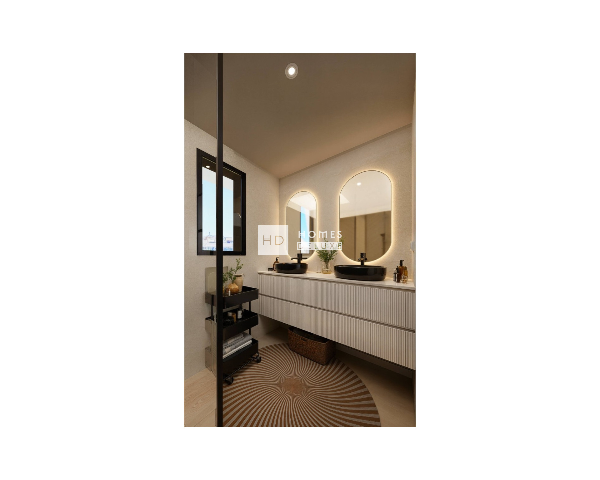 Het gebouw telt meer dan 7 verdiepingen en is ontworpen in een prachtige eigentijdse stijl. Het exclusieve penthouse valt op omdat het de enige woning op zijn eigen verdieping is, met een privézwembad en barbecueplaats, ideaal voor wie op zoek is naar extra privacy en luxe. De indeling van het interieur bestaat uit een lichte en ruime open woon- en eetkamer met grote ramen die uitkomen op het ruime terras. In de belangrijkste leefruimte bevindt zich een volledig ingerichte moderne keuken in Amerikaanse stijl, inclusief hoge en lage kasten met een laminaatafwerking in beigetinten gecombineerd met hout. De grote hoofdslaapkamer beschikt over een en-suite badkamer en een kleedruimte. Er zijn nog twee ruime tweepersoonsslaapkamers, een aparte gastenbadkamer en een handige wasruimte. Het penthouse-appartement heeft een buitentrap op het terras die leidt naar het uitgebreide dakterras van 78 m² met een privézwembad en een ingebouwde barbecue. De woningen zijn voorzien van pre-installatie voor airconditioning, elektrische keukenapparatuur (oven, keramische kookplaat, afzuigkap en koelkast met vriesvak), inbouwkasten en elektrische rolluiken in alle slaapkamers, video-intercomsysteem, LED-buitenverlichting en een eigen parkeerplaats.