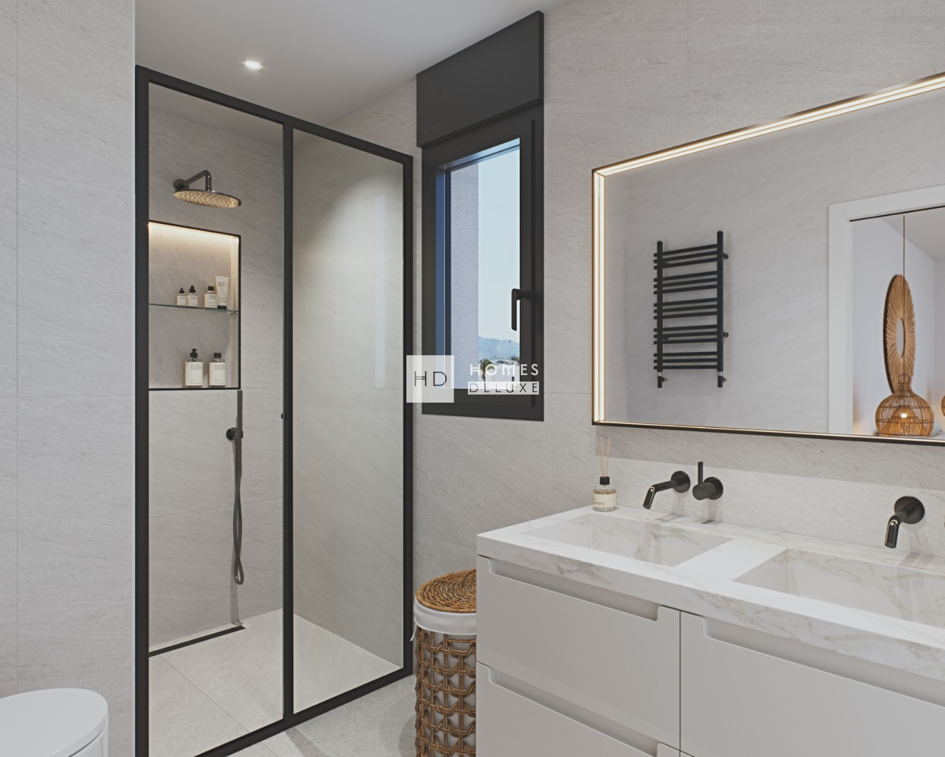 De woningen zijn gebouwd volgens de hoogste normen en ontworpen in een functionele en mooie eigentijdse stijl met karakteristieke stenen muren. De villa's hebben twee verdiepingen en beschikken ook over een kelderverdieping en een groot dakterras. De indeling van het interieur bestaat uit een lichte en ruime open woon- en eetkamer met grote ramen die veel natuurlijk licht binnenlaten en uitzicht bieden op de mooie privétuin. In de woonkamer bevindt zich een volledig ingerichte moderne keuken in Amerikaanse stijl met designkeukenkasten en een kookeiland. De keuken heeft ook een toegangsdeur naar het terras. Op de begane grond bevinden zich ook een ruime tweepersoonsslaapkamer en een badkamer met dubbele toegangsdeur vanuit de slaapkamer of woonkamer. De binnentrap leidt u naar de eerste verdieping met de indrukwekkende hoofdslaapkamer met en-suite badkamer, inloopkast/kleedruimte met veel opbergruimte. De hoofdslaapkamer heeft ook openslaande deuren naar het prachtige zonneterras. Er zijn nog twee grote tweepersoonsslaapkamers met beide een eigen badkamer op de eerste verdieping. De villa's hebben een grote kelder van 74 m² met een Engelse patio die zorgt voor ventilatie en natuurlijke verlichting. Dit creëert extra leefruimte binnen het pand om aan uw wensen en eisen te voldoen.