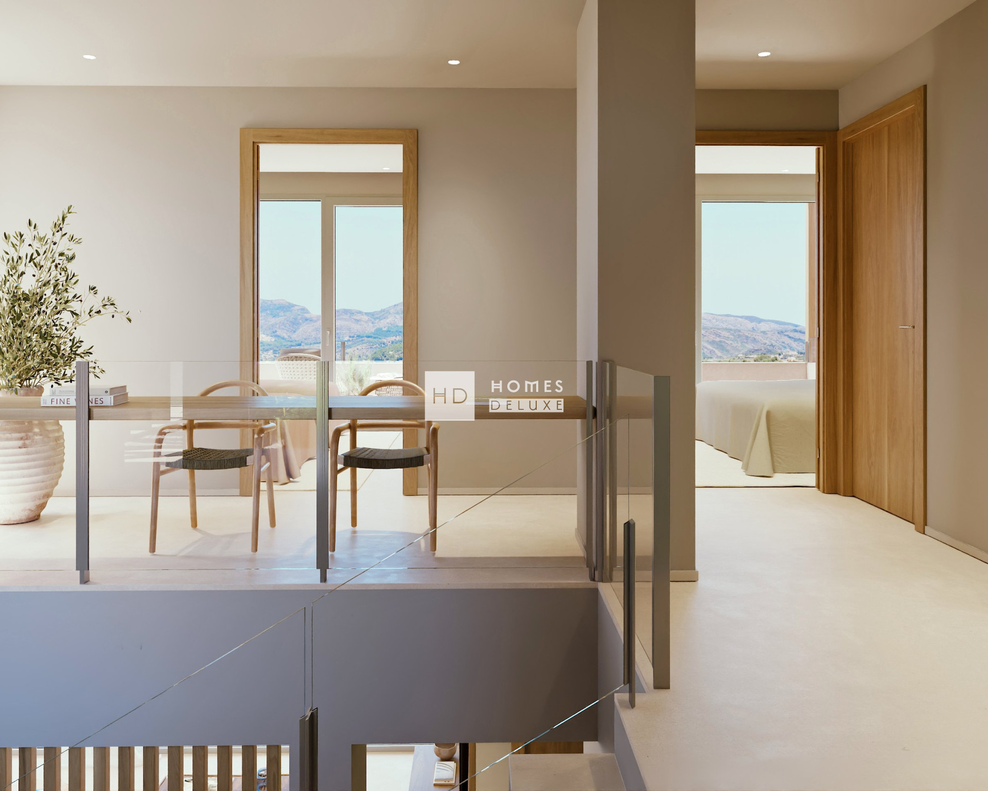Elements EcoResidences verrijst in Llíber, in het hart van de Vall de Pop, als een project dat verder gaat dan architectuur: het is een uitnodiging om in harmonie met de natuur te leven. Tussen bergen, wijngaarden en dorpen vol traditie herinterpreteert dit woonproject de mediterrane stijl met een eigentijdse, duurzame taal, volledig in balans met het landschap. Vanaf de basis is de infrastructuur bedacht met innovatieve, efficiënte technieken om een verantwoorde en duurzame omgeving te creëren. Bij Elements is elke hoek ontworpen om welzijn en gemeenschapsgevoel te versterken: een clubhuis met restaurant, spa en fitness; gemeenschappelijke moestuinen die verbinden met de aarde; buitensportzones en groene gebieden die uitnodigen om te genieten van frisse lucht en rust. In dit kader ontstaat Airen Collection, de eerste fase van het project, bestaande uit villa’s die authenticiteit, warmte en moderniteit in gelijke mate uitstralen. Het model Airen A is bedoeld voor wie in het dagelijks leven maximale gemak zoekt. De hoofdverdieping bundelt alles wat belangrijk is: een ruime living-eetkamer die in verbinding staat met terras en zwembad, een open designkeuken en een hoofdslaapkamer met en-suite badkamer. De bovenverdieping voegt twee extra slaapkamers toe met privéterrassen die het uitzicht over de vallei inkaderen—perfect voor familie of gasten. De buitenruimte maakt de beleving compleet: privézwembad, geterrasseerde tuinen en terrassen die de woning laten opgaan in het mediterrane landschap. Dit alles wordt aangevuld met een uitrusting die comfort en duurzaamheid garandeert: aerothermie, vloerverwarming, fotovoltaïsche panelen, een ventilatiesysteem met warmteterugwinning, domotica en een laadpunt voor elektrische auto’s. Airen A is meer dan een huis: het is een thuis waar elke dag in harmonie met de natuur wordt geleefd, in een omgeving die uitnodigt om het authentieke te ervaren.