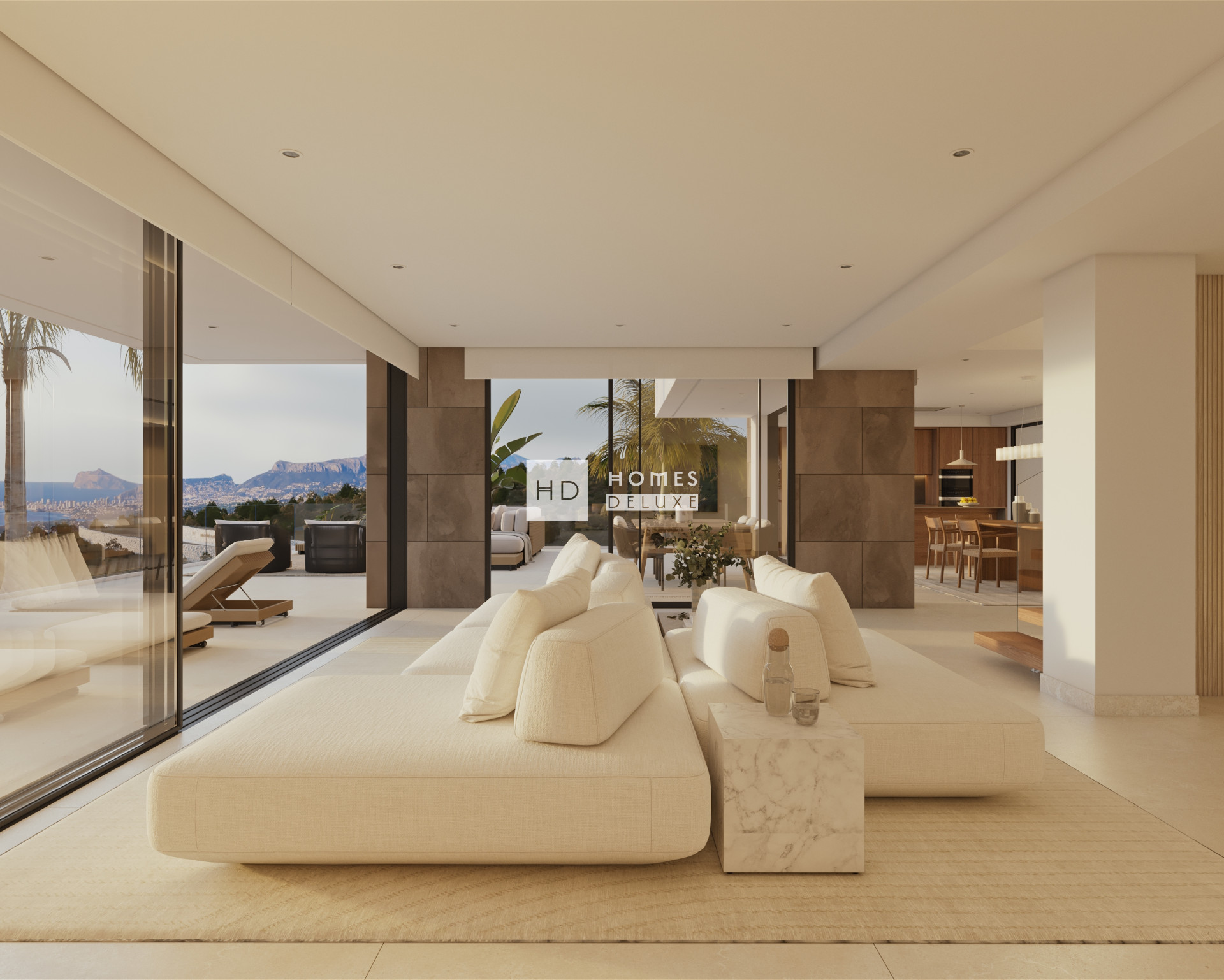 Villa Lavanda is gebouwd op het exclusieve perceel 93 van het residentiële domein Jazmines (Cumbre del Sol). Het is een perfecte combinatie van eigentijds design, comfort en een bevoorrechte ligging aan zee. Dit is een luxe woning voor wie op zoek is naar het allerbeste in het noorden van de Costa Blanca. Het project van Villa Lavanda is opvallend door het moderne ontwerp met rechte lijnen, horizontaal gerichte volumes, grote ramen en natuurlijke materialen waardoor het geheel perfect past bij het landschap. Alle vertrekken zijn zodanig georiënteerd dat het daglicht maximaal binnenvalt en om te kunnen genieten van een grenzeloos panoramisch uitzicht over de zee en de emblematische Peñón de Ifach. De woning heeft drie verdiepingen: De hoofdverdieping, waar de indrukwekkende leefruimte zich bevindt, is één open ruimte met salon, eetplaats en keuken met centraal kookeiland. Grote ramen geven toegang tot het terras, de eetplaats in open lucht en de infinity pool. De grootste slaapkamer, met dressing en en suite badkamer met vrijstaand bad en regendouche bevindt zich ook op dit niveau. De kamer heeft rechtstreeks toegang tot het terras. Bovenverdieping: hier zijn de andere slaapkamers, allemaal met privé badkamer en terrassen, vanwaar je kunt genieten van een adembenemend zeezicht. Kelderverdieping: één open ruimte met daglicht. Deze ruimte kan worden gebruikt voor verschillende doelen zoals fitness, vrije tijdruimte, cinema of een appartement voor bezoekers. Hier is ook een wasplaats en een bergruimte. Villa Lavanda heeft materialen en een afwerking van hoog niveau voor elegantie, functioneel gebruik en duurzaamheid. Er zijn keramische grootformaat tegels gebruikt voor de bevloering. De design keuken is bemeubeld met hoogwaardige installaties en ingebouwde elektrische apparatuur. Het aanrecht is in warme neutrale kleuren met indirecte LED verlichting. De badkamers hebben een eigentijds design: zwevend sanitair, ingebouwde kranen en spiegels met achtergrondverlichting. Er is vloerverwarming en airconditioning met zoneregeling. De verlichting, klimaatregeling en rolluiken worden via domotica bestuurd. Buiten de woning krijg je een totaal mediterrane ervaring. De infinity pool loopt visueel over in zee. Het terras is gemeubeld voor chill outruimte, eetplaats in openlucht en met ligstoelen. Hier zal je zeker kunnen genieten van elke avond. Op de bovenverdieping is ook een terras, een solarium met privé jacuzzi, waar je kunt ontspannen met een panoramisch uitzicht op de kust. Villa Lavanda staat in het residentiële domein Jazmines, een luxueuze zone op het grondgebied van Cumbre del Sol, in Benitachell, tussen Jávea en Moraira. Dit is één van de meest begeerde locaties aan de Middellandse Zee. Hier zijn privé veiligheid, exclusieve facilities, een internationale school, restaurants, sportterreinen en toegang tot de spectaculaire Cala del Moraig. Villa Lavanda is perfect voor wie een high level residentie zoekt, een vakantieverblijf om het hele jaar te genieten van het mediterrane klimaat of als investering in een exclusieve eigendom, gelegen in een geconsolideerd gebied met een hoge meerwaarde.