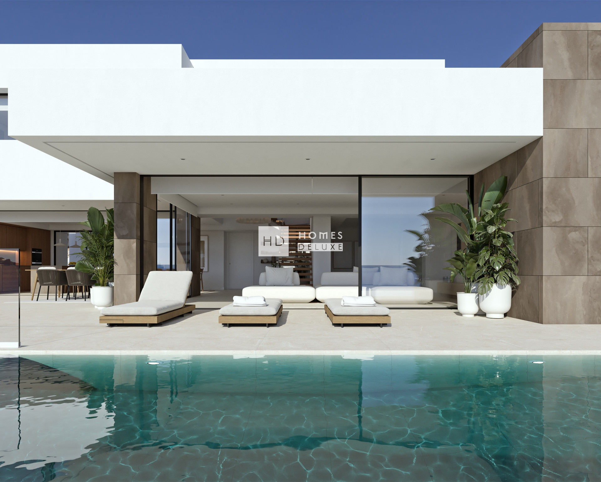 Villa Lavanda is gebouwd op het exclusieve perceel 93 van het residentiële domein Jazmines (Cumbre del Sol). Het is een perfecte combinatie van eigentijds design, comfort en een bevoorrechte ligging aan zee. Dit is een luxe woning voor wie op zoek is naar het allerbeste in het noorden van de Costa Blanca. Het project van Villa Lavanda is opvallend door het moderne ontwerp met rechte lijnen, horizontaal gerichte volumes, grote ramen en natuurlijke materialen waardoor het geheel perfect past bij het landschap. Alle vertrekken zijn zodanig georiënteerd dat het daglicht maximaal binnenvalt en om te kunnen genieten van een grenzeloos panoramisch uitzicht over de zee en de emblematische Peñón de Ifach. De woning heeft drie verdiepingen: De hoofdverdieping, waar de indrukwekkende leefruimte zich bevindt, is één open ruimte met salon, eetplaats en keuken met centraal kookeiland. Grote ramen geven toegang tot het terras, de eetplaats in open lucht en de infinity pool. De grootste slaapkamer, met dressing en en suite badkamer met vrijstaand bad en regendouche bevindt zich ook op dit niveau. De kamer heeft rechtstreeks toegang tot het terras. Bovenverdieping: hier zijn de andere slaapkamers, allemaal met privé badkamer en terrassen, vanwaar je kunt genieten van een adembenemend zeezicht. Kelderverdieping: één open ruimte met daglicht. Deze ruimte kan worden gebruikt voor verschillende doelen zoals fitness, vrije tijdruimte, cinema of een appartement voor bezoekers. Hier is ook een wasplaats en een bergruimte. Villa Lavanda heeft materialen en een afwerking van hoog niveau voor elegantie, functioneel gebruik en duurzaamheid. Er zijn keramische grootformaat tegels gebruikt voor de bevloering. De design keuken is bemeubeld met hoogwaardige installaties en ingebouwde elektrische apparatuur. Het aanrecht is in warme neutrale kleuren met indirecte LED verlichting. De badkamers hebben een eigentijds design: zwevend sanitair, ingebouwde kranen en spiegels met achtergrondverlichting. Er is vloerverwarming en airconditioning met zoneregeling. De verlichting, klimaatregeling en rolluiken worden via domotica bestuurd. Buiten de woning krijg je een totaal mediterrane ervaring. De infinity pool loopt visueel over in zee. Het terras is gemeubeld voor chill outruimte, eetplaats in openlucht en met ligstoelen. Hier zal je zeker kunnen genieten van elke avond. Op de bovenverdieping is ook een terras, een solarium met privé jacuzzi, waar je kunt ontspannen met een panoramisch uitzicht op de kust. Villa Lavanda staat in het residentiële domein Jazmines, een luxueuze zone op het grondgebied van Cumbre del Sol, in Benitachell, tussen Jávea en Moraira. Dit is één van de meest begeerde locaties aan de Middellandse Zee. Hier zijn privé veiligheid, exclusieve facilities, een internationale school, restaurants, sportterreinen en toegang tot de spectaculaire Cala del Moraig. Villa Lavanda is perfect voor wie een high level residentie zoekt, een vakantieverblijf om het hele jaar te genieten van het mediterrane klimaat of als investering in een exclusieve eigendom, gelegen in een geconsolideerd gebied met een hoge meerwaarde.
