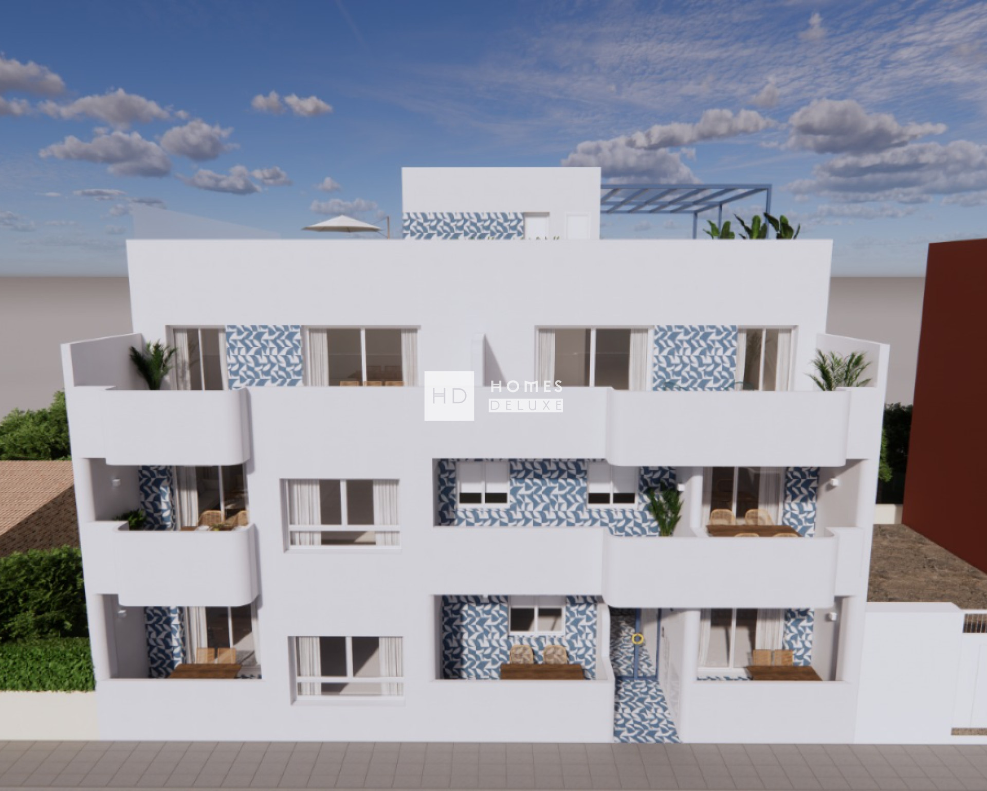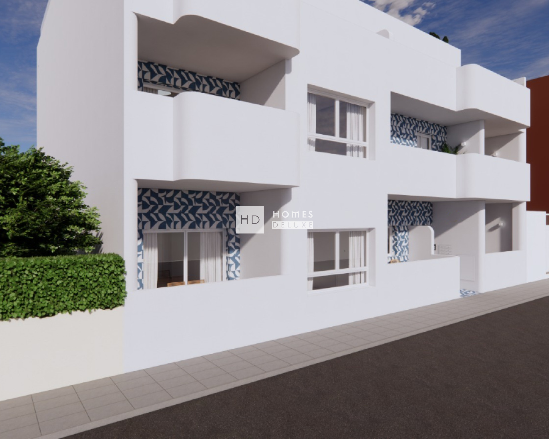 Het project omvat acht innovatieve appartementen in mediterrane stijl met 1, 2 en 3 slaapkamers, inclusief een gemeenschappelijk solarium op het dak waar de bewoners kunnen genieten van een uitnodigend gemeenschappelijk zwembad, een prachtige buitenkeuken met twee elektrische grills, tafels onder mooie pergola's en een kunstgrasveld voor ligstoelen om te ontspannen en tot rust te komen bij het zwembad. Er is keuze uit appartementen op de begane grond, eerste verdieping en tweede verdieping, allemaal met een eigen terras.