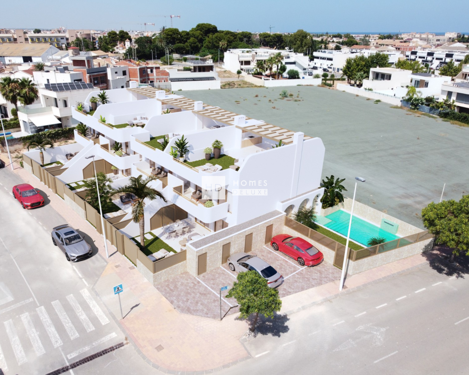 Een gloednieuw project van 8 exclusieve, moderne appartementen in bungalowstijl met 3 slaapkamers en 2 badkamers, gelegen in San Pedro del Pinatar (Murcia). Met zijn benijdenswaardige ligging dicht bij stranden, restaurants en alle voorzieningen is het de perfecte mix van comfort, gemak en mediterrane levensstijl.