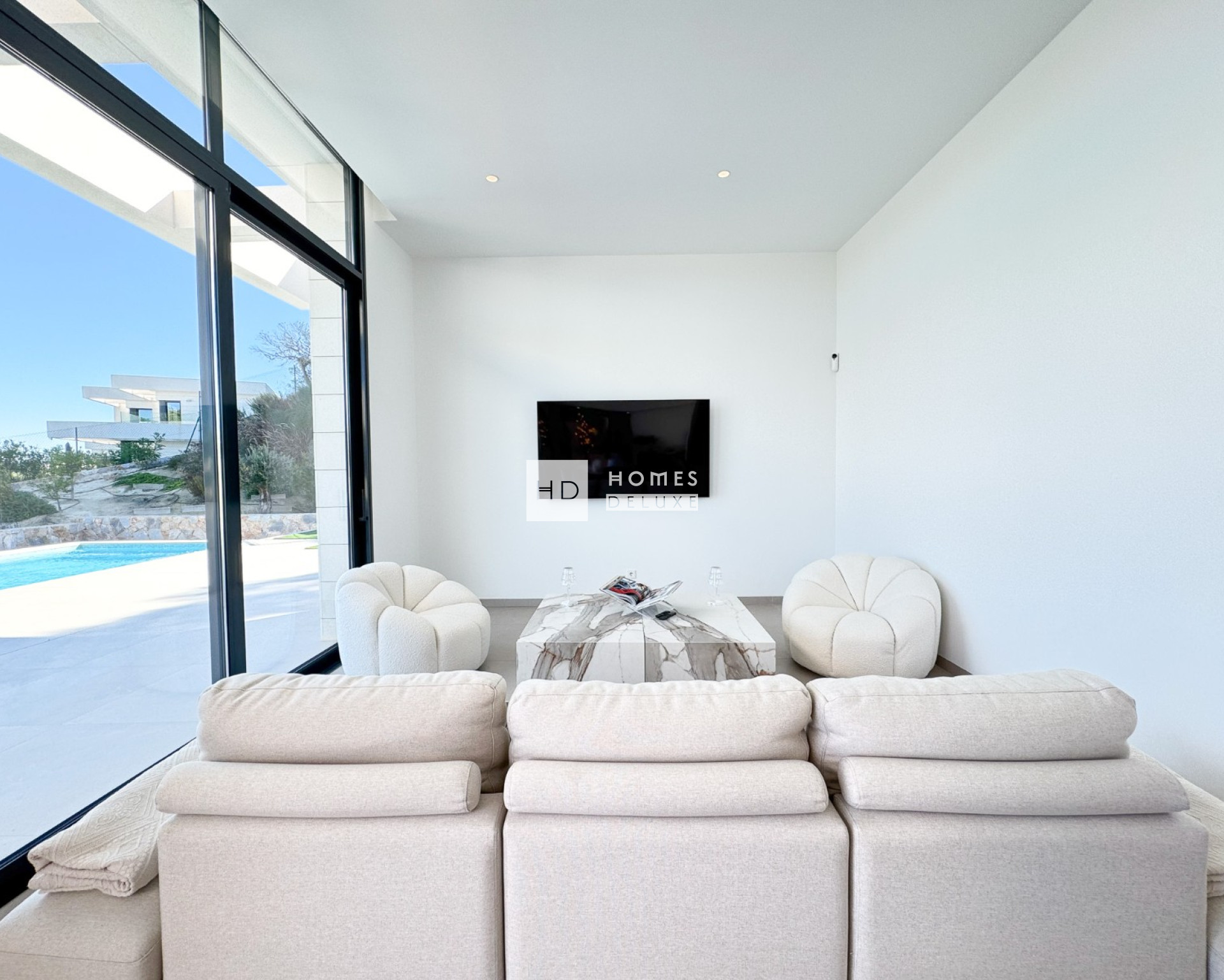 Luxe vrijstaande villa in de gemeenschap Madroño Las Colinas Golf met 5 slaapkamers, 4 badkamers, bioscoopzaal, garage, kelder en privézwembad met prachtig uitzicht op de golfbaan. Privéligging op de tweede lijn van de golfbaan. Panoramisch uitzicht van 180º vanaf een ruim terras op de begane grond, evenals extra terrassen op de bovenverdieping. Ruime kelder met 3 slaapkamers, 2 badkamers, bioscoopzaal en wasruimte. Privégarage voor twee auto's en ruimte voor meerdere auto's. Moderne keuken met luxe apparatuur en een modern ontwerp met hoogwaardige afwerking en veel speciale kenmerken. Gelegen in het exclusieve golfresort Las Colinas, biedt deze woning een prachtig toevluchtsoord om vanuit uw thuiskantoor te werken of te ontspannen met uw gezin. Op slechts enkele minuten van alle lokale voorzieningen, evenals andere golfbanen, gezellige baaien met witte zandstranden en winkels.