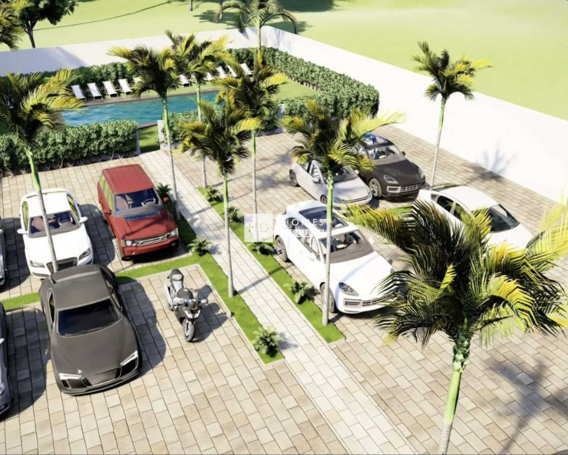 De indeling van het interieur bestaat uit een ruime open woonkamer en eetkamer met grote ramen die uitkomen op het privéterras. In de belangrijkste leefruimte bevindt zich een volledig ingerichte moderne keuken in Amerikaanse stijl met een wit gelakte afwerking en glazen deuren. Het penthouse met 2 slaapkamers heeft een tweepersoonsslaapkamer en een aparte gastenbadkamer op de begane grond. De binnentrap naar de eerste verdieping leidt naar een grote tweepersoonsslaapkamer met en-suite badkamer en het ruime dakterras, dat de buitenruimte nog verder vergroot. De woningen zijn voorzien van voorinstallatie voor airconditioning, elektrische keukenapparatuur (oven, kookplaat, afzuigkap, magnetron en koelkast met vriesvak), inbouwkasten in alle slaapkamers en een eigen parkeerplaats buiten.