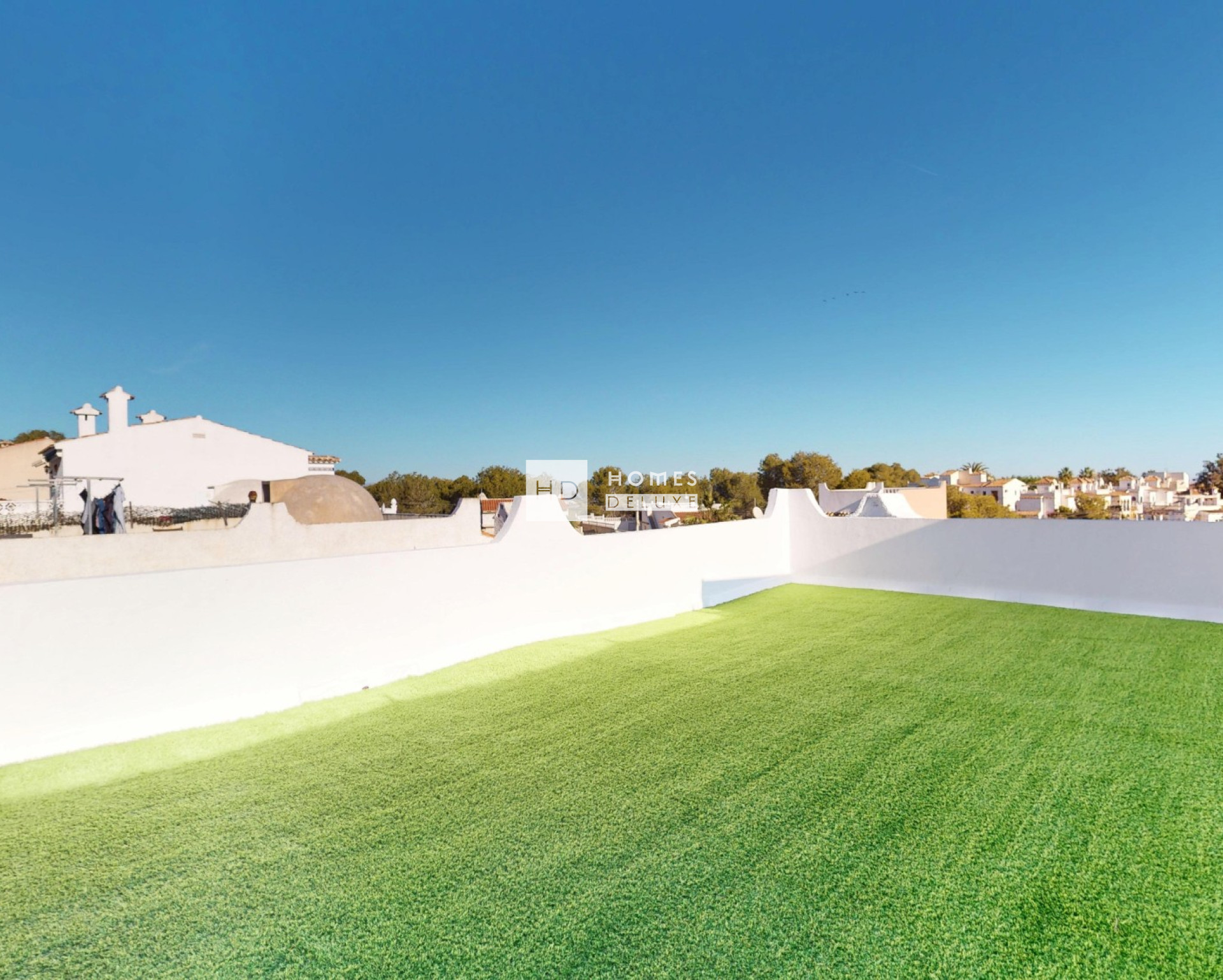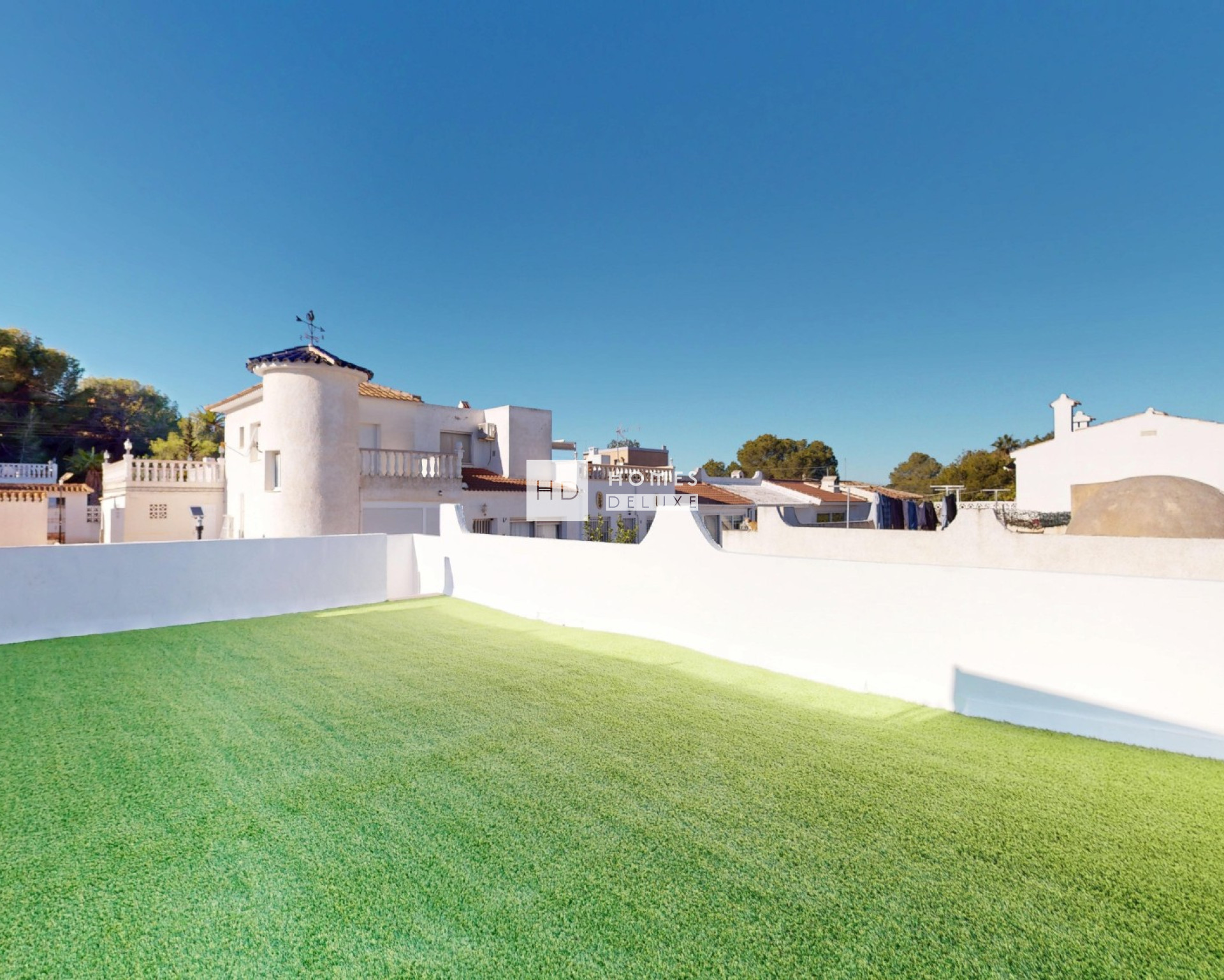 De woning is volledig gerenoveerd en heeft een woonoppervlakte van 58 m² met 2 slaapkamers, 1 badkamer, laminaatvloeren en een gloednieuwe keuken die is uitgerust met alle elektrische apparatuur. De woning heeft een royale perceelgrootte van 202 m² en valt op door zijn ruime buitenruimte en tuin van 147 m², perfect om het hele jaar door van het klimaat te genieten. Bovendien biedt het grote perceel de toekomstige eigenaar de mogelijkheid om desgewenst een privézwembad aan te leggen (op eigen kosten). De buitenruimte wordt nog verder uitgebreid door het 48 m² grote dakterras met kunstgras en heggen, dat een ideale plek biedt om in alle privacy te ontspannen.