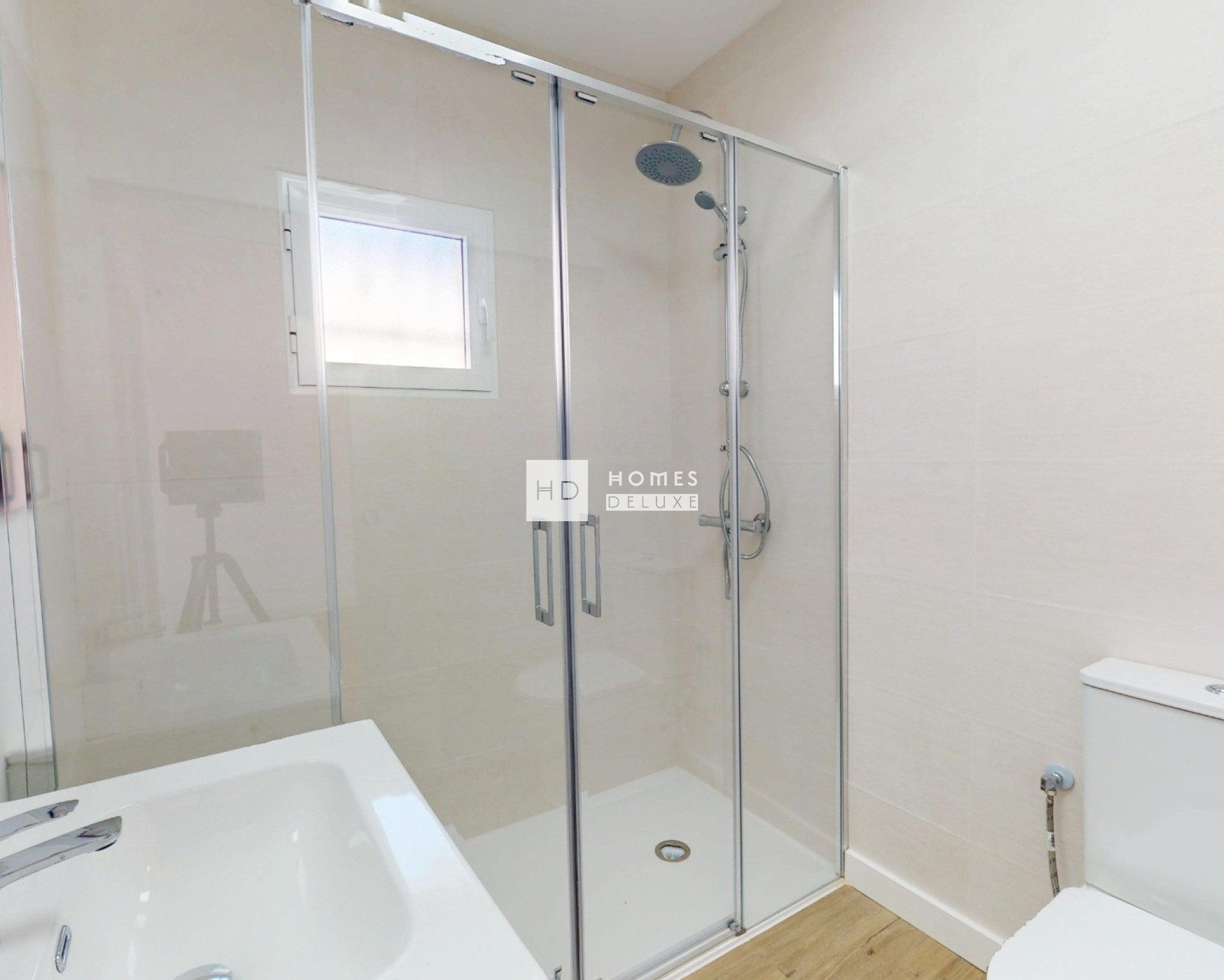 Deze woning heeft twee slaapkamers, perfect voor uw gezin of als werkruimte. De complete badkamer is uitgerust met een douche en een modern scherm. De gloednieuwe keuken is volledig uitgerust met ultramoderne apparatuur, waaronder een wasmachine en vaatwasser, zodat u er vanaf dag één van kunt genieten. De laminaatvloer met houteffect voegt warmte en een elegante toets toe aan de hele woning. De deuren, ramen en muren zijn afgewerkt in wit. De ramen en deuren zijn voorzien van thermische onderbrekingstechnologie en de woning is voorzien van laminaatvloeren binnen en keramische tegels met houteffect buiten.