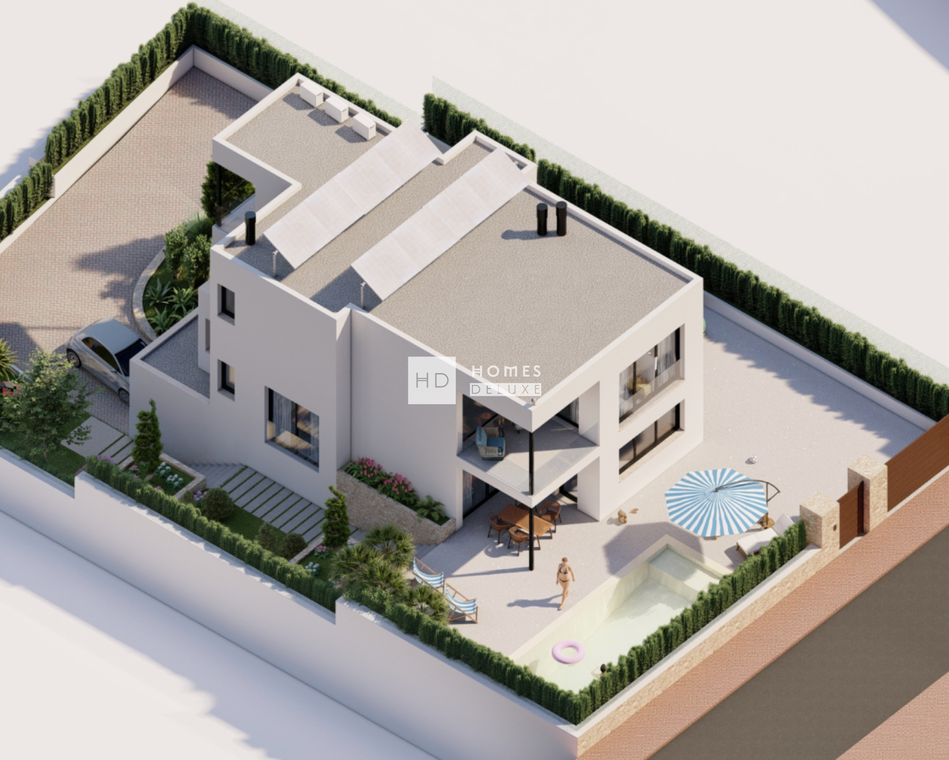 Dit bijzondere villaproject biedt een prachtige woning met 5 slaapkamers en 5,5 badkamers, verdeeld over twee verdiepingen, met een extra kelderverdieping waar u een privégarage heeft. De indeling van het interieur bestaat uit een hal die leidt naar de lichte en ruime open woon- en eetkamer met hoge plafonds en grote ramen die uitkomen op het buitenterras. In de belangrijkste leefruimte bevindt zich een grote keuken met veel opbergruimte en werkbladruimte, en er is ook een handig gastentoilet. Op de begane grond bevinden zich ook twee ruime tweepersoonsslaapkamers, beide met een eigen badkamer. De binnentrap leidt u naar de eerste verdieping met de indrukwekkende hoofdslaapkamer met grote slaapkamer, eigen badkamer en extra grote kleedruimte. De hoofdslaapkamer heeft ook een eigen terras. Op de eerste verdieping bevindt zich nog een slaapkamersuite met een eigen badkamer, kleedruimte en toegang tot een eigen terras. De kelderverdieping van het pand breidt de leefruimte verder uit met nog een tweepersoonsslaapkamer en een aparte gastenbadkamer, wat handig is voor grotere gezinnen of wanneer er gasten komen logeren. De kelderverdieping heeft natuurlijk licht en ventilatie vanuit de karakteristieke Engelse patio en heeft ook directe toegang tot de ruime garage voor twee auto's en een berging.
