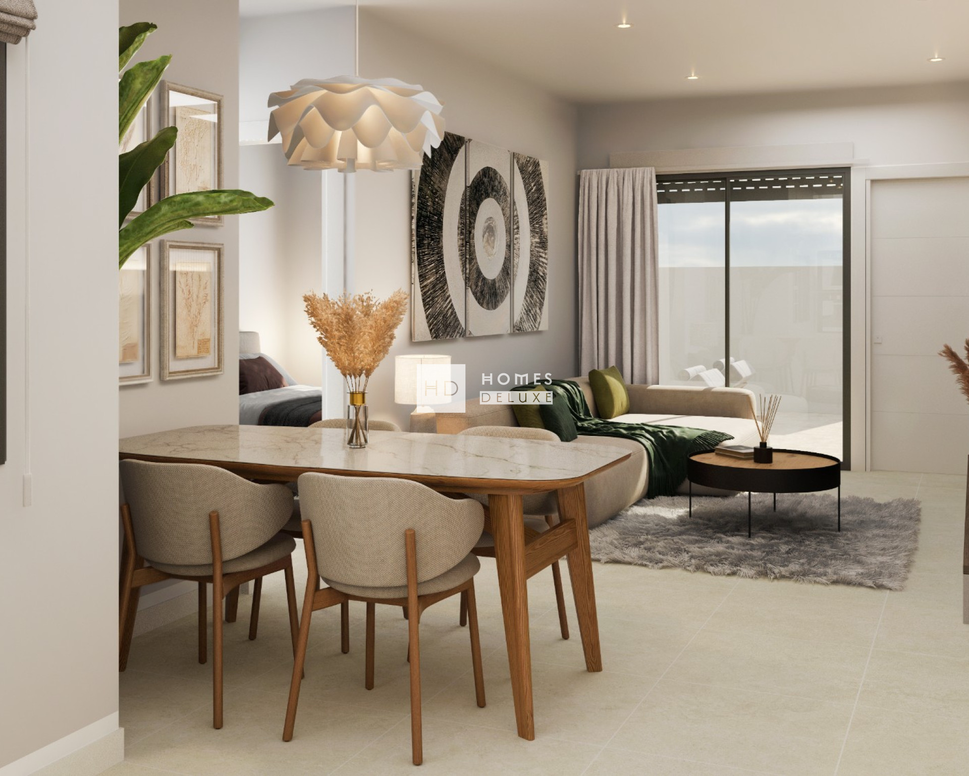 Hoewel de woningen nog in aanbouw zijn, bestaat de mogelijkheid om de woning een indeling met 2 slaapkamers en 2 badkamers te geven, waarbij u een extra grote hoofdslaapkamer heeft met een extra kleedruimte met extra kastruimte. De woningen voldoen aan de hoogste normen en zijn voorzien van voorinstallatie voor airconditioning, elektrische keukenapparatuur (keramische kookplaat, oven, afzuigkap, magnetron, koelkast met vriesvak en vaatwasser), inbouwkasten in alle slaapkamers, LED-verlichting binnen en buiten, intercomsysteem, privézwembad en privéparkeerplaats op het perceel.
