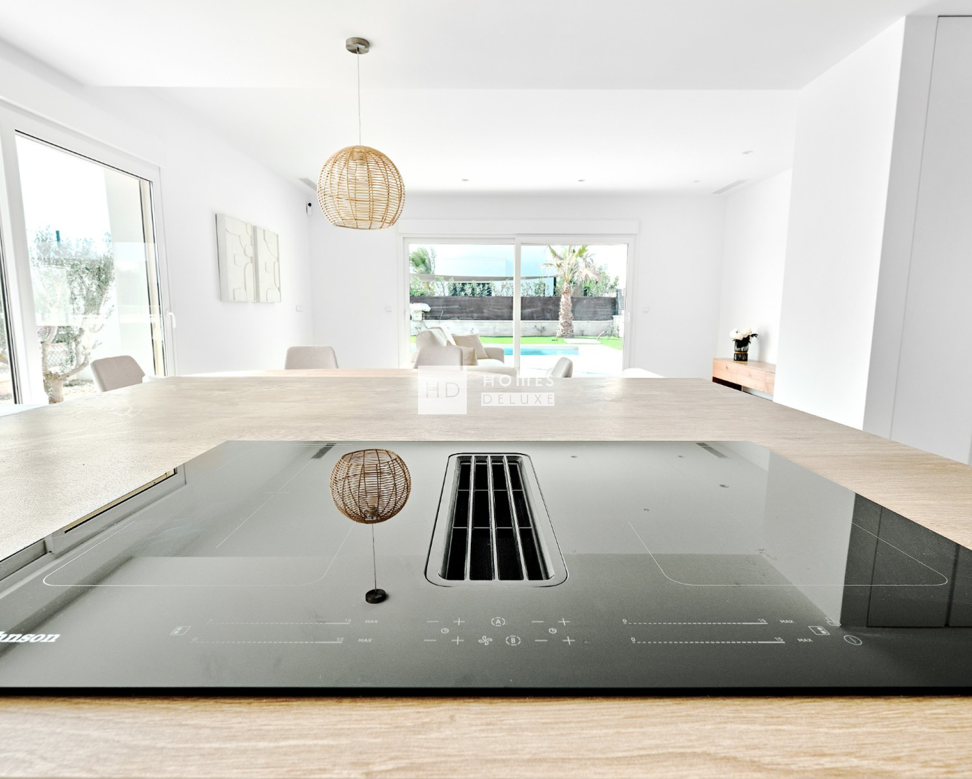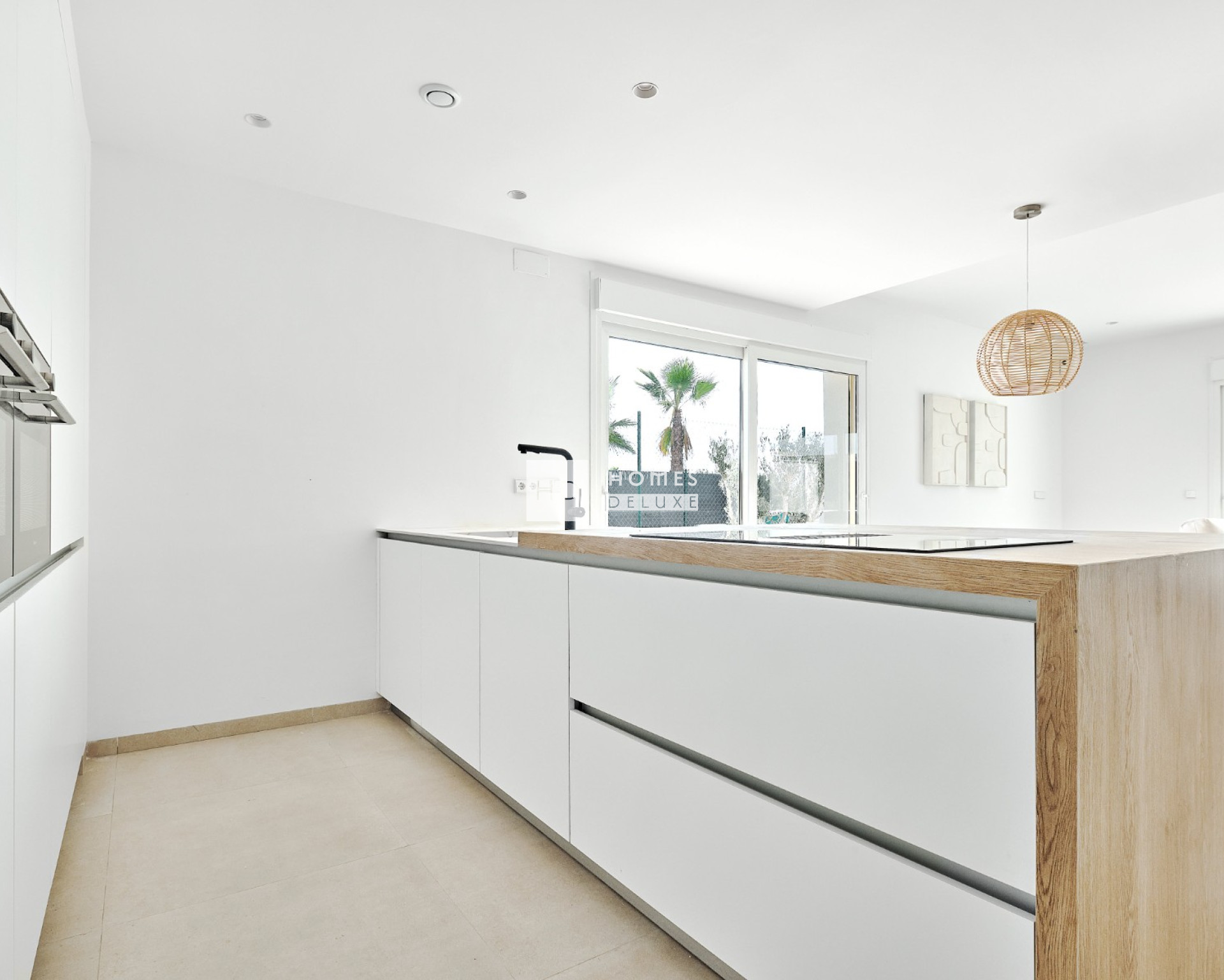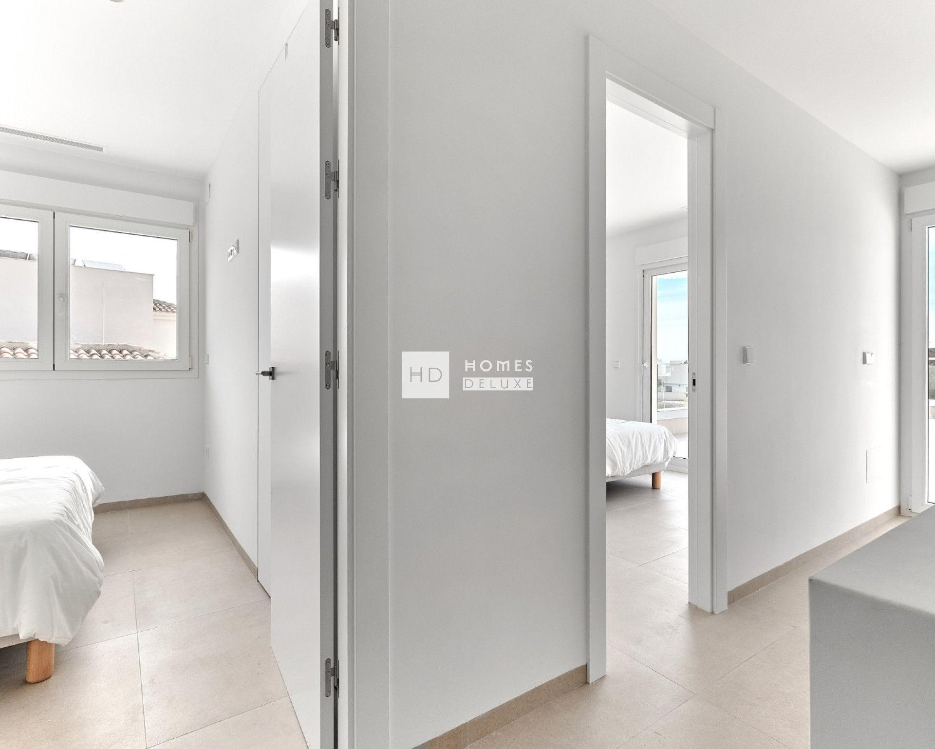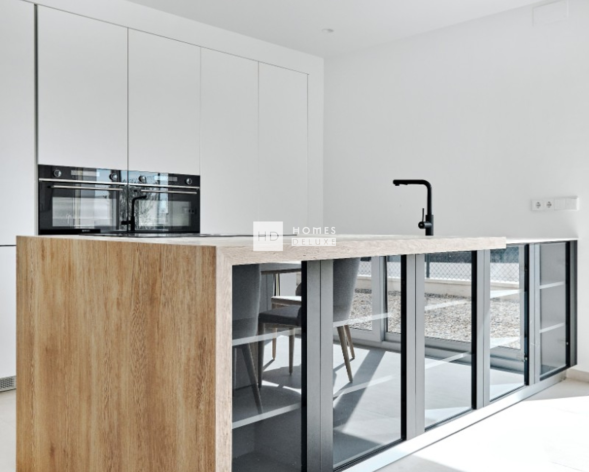 De villa's zijn allemaal gelijkvloers en de indeling van het interieur bestaat uit een lichte en ruime open woon- en eetkamer met grote ramen die veel natuurlijk licht binnenlaten en uitkomen op het terras en de tuin. In de belangrijkste leefruimte bevindt zich een volledig ingerichte Amerikaanse keuken met een kookeiland in verschillende kleuren, en er is een handige aparte wasruimte. De ruime hoofdslaapkamer heeft een en-suite badkamer en openslaande deuren naar de achtertuin. Er zijn nog twee ruime tweepersoonsslaapkamers en een aparte gastenbadkamer. Alle villa's zijn voorzien van airconditioning, keukenapparatuur (oven, inductiekookplaat, afzuigkap, magnetron, koelkast met vriesvak, vaatwasser en wasmachine), vloerverwarming en voorinstallatie voor elektrische handdoekrekken in de badkamers, inbouwkasten in alle slaapkamers, LED-verlichting binnen en buiten, elektrische rolluiken, intercomsysteem, privézwembad en privéparkeerplaats op het perceel.