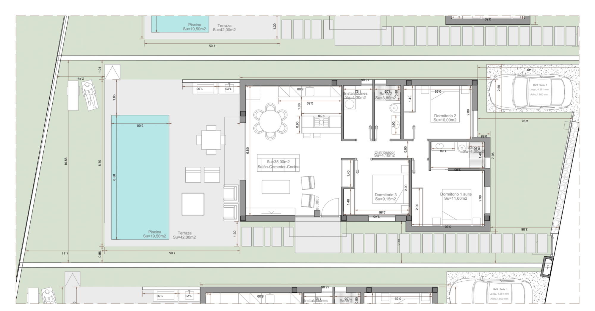 De woningen zijn gebouwd volgens de hoogste normen met hoogwaardige materialen en afwerkingen. De percelen hebben een mooie zuidwestelijke ligging en elke villa biedt veel buitenruimte om optimaal te genieten van het buitenleven in Spanje, met een grote privétuin en een terras met een uitnodigend privézwembad van iets minder dan 20 m². Er is een zomerkeuken met gootsteen op het hoofdterras, waar u kunt genieten van een gezellig diner in de open lucht met familie en vrienden, evenals ruimtes om te ontspannen en te zonnen in het heerlijke Spaanse klimaat.