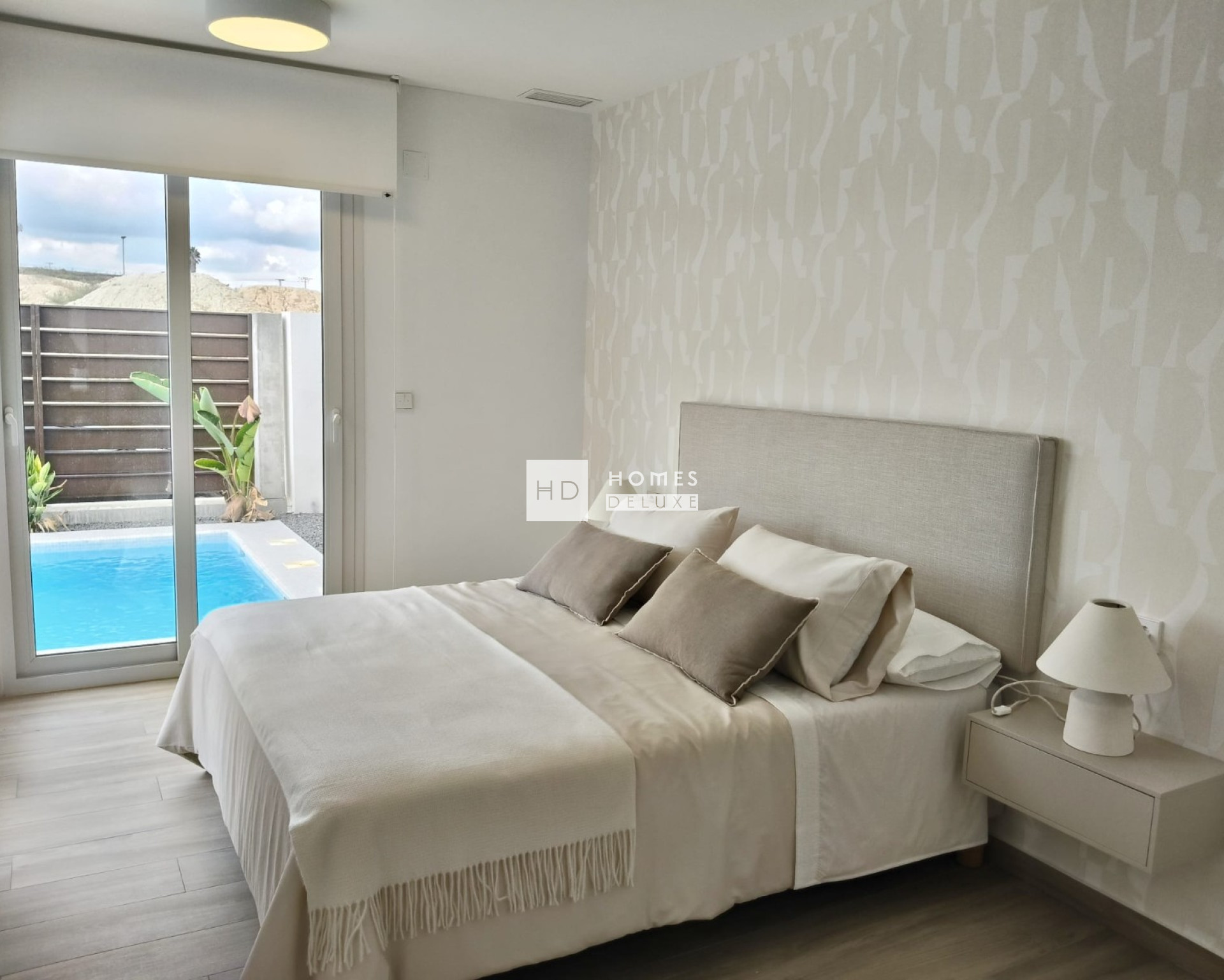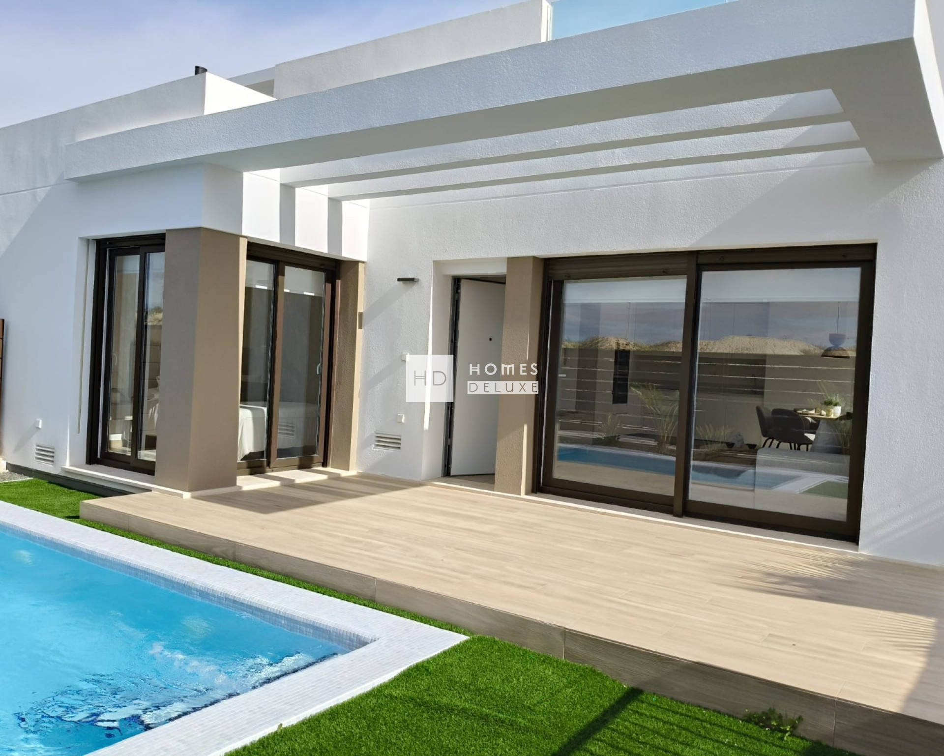 Een gloednieuwe, instapklare half-geschakelde villa met 3 slaapkamers, 2 badkamers en een privézwembad, gelegen in de woonwijk Vistabella Golf Resort - Los Montesinos (Alicante), met alle voorzieningen op loopafstand, waaronder een supermarkt, bars en restaurants, en dicht bij andere bezienswaardigheden zoals de lagunes van Torrevieja, Guardamar del Segura en Orihuela Costa.