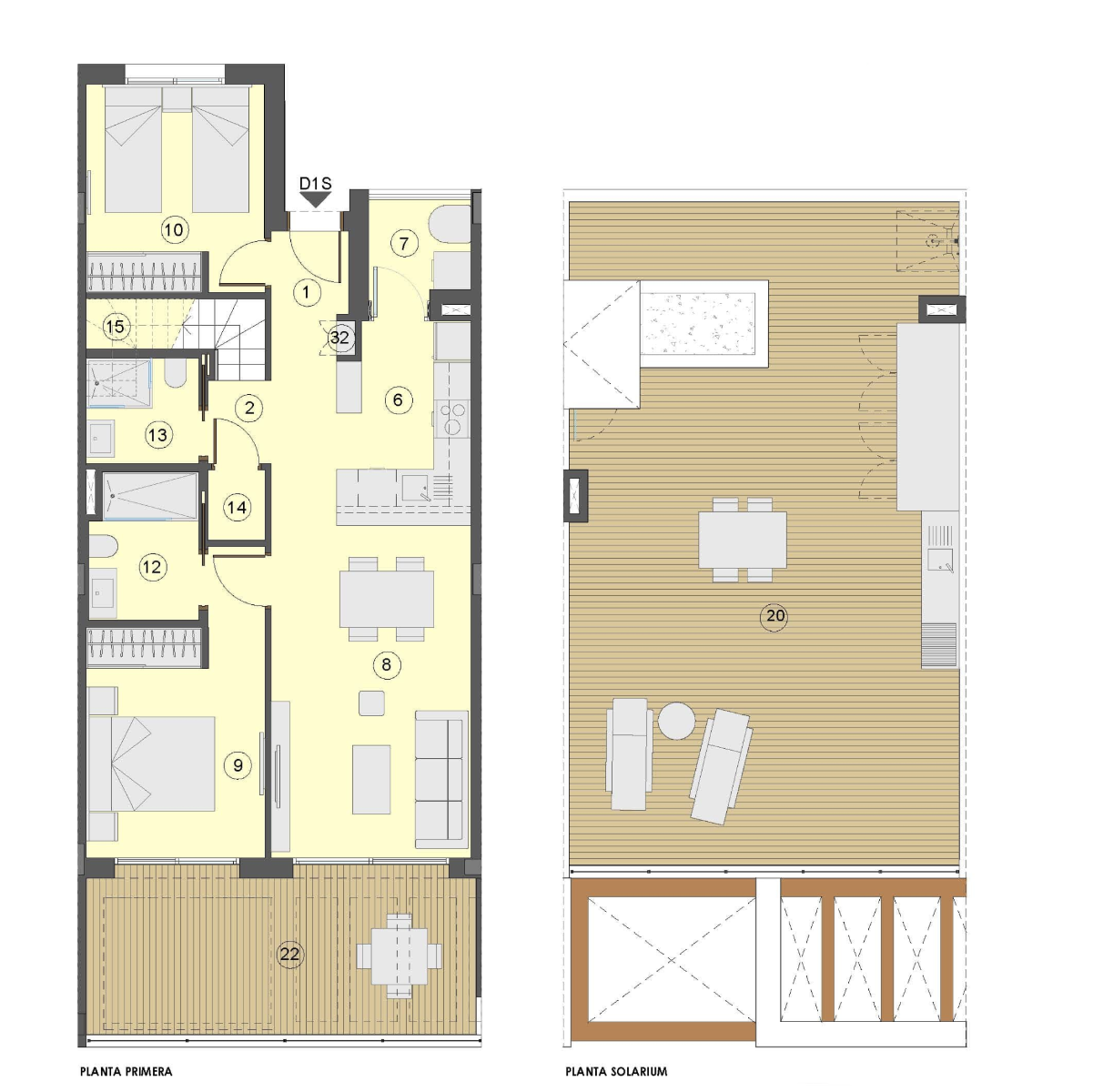 Er is een grote verscheidenheid aan woningtypes die aansluiten bij verschillende levensstijlen en behoeften, waarbij functionaliteit, natuurlijk licht en buitenruimtes worden gecombineerd. Het project omvat 112 woningen met 2 slaapkamers en 1 badkamer, 2 slaapkamers en 2 badkamers, of 3 slaapkamers en 2 badkamers. De woningen vallen op door hun evenwichtige indeling en sterke verbinding met de buitenruimtes, of dat nu via privétuinen, terrassen of solaria is, waardoor elke ruimte een natuurlijk verlengstuk van de woning wordt. Een woonwijk die is ontworpen om met comfort, licht en welzijn van het dagelijks leven te genieten, in een zorgvuldig onderhouden omgeving die volledig is geïntegreerd in de mediterrane levensstijl.