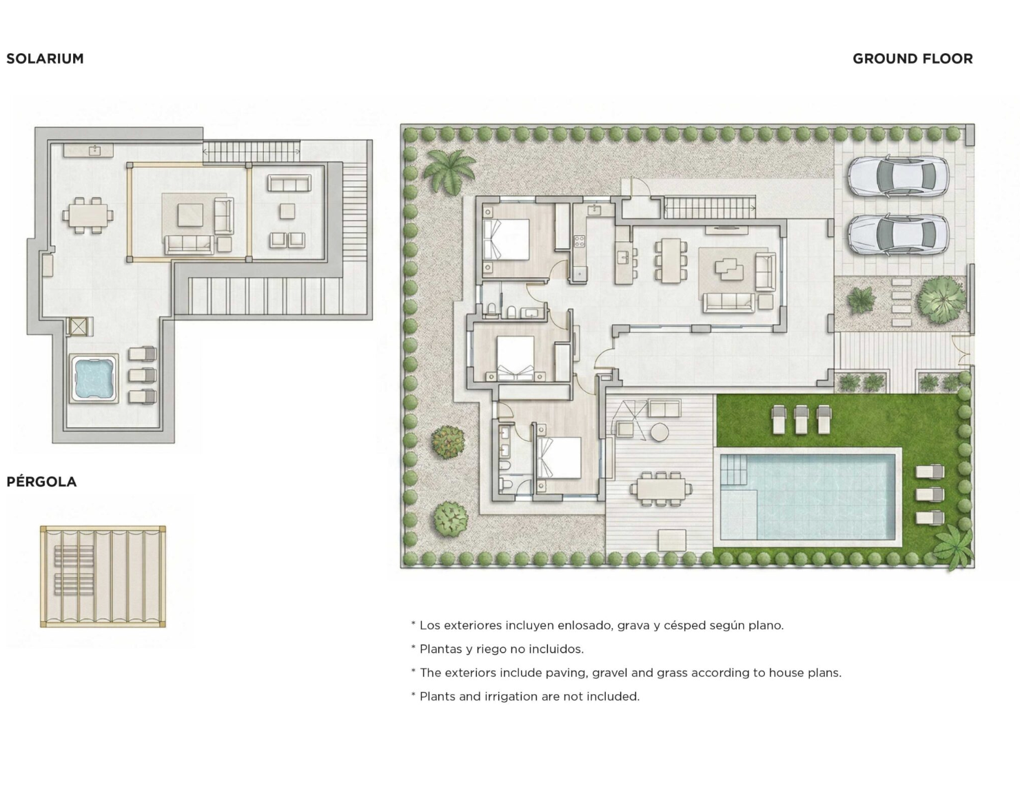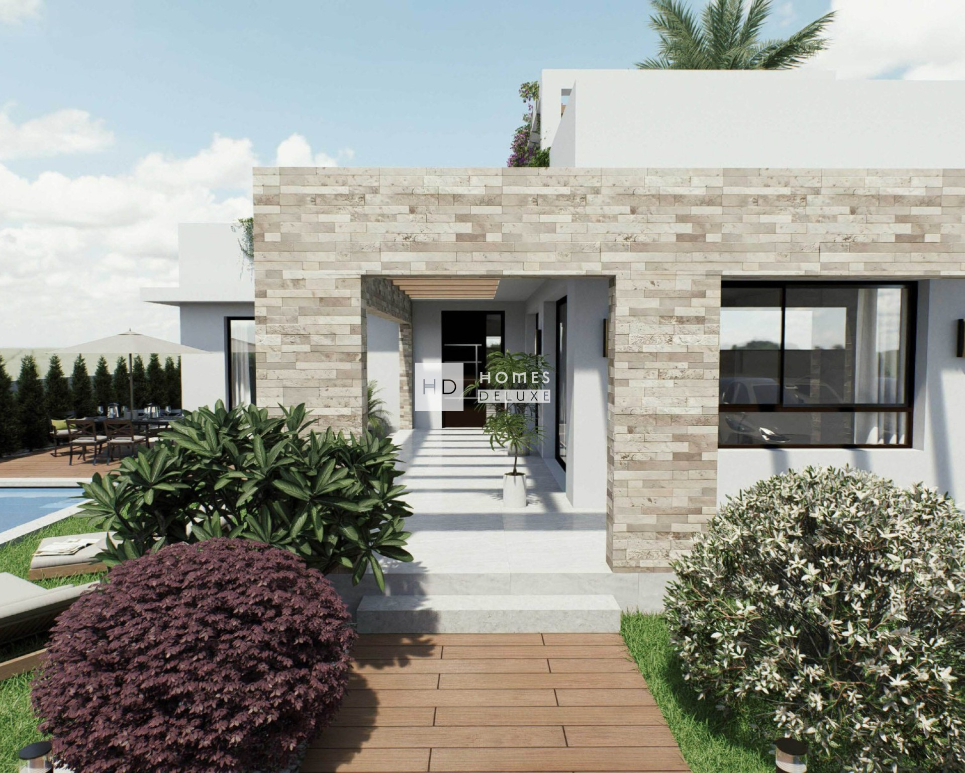 Deze moderne villa in eigentijdse stijl is ontworpen voor mensen die op zoek zijn naar comfort, privacy en buitenruimtes om het hele jaar door van te genieten. De woning beschikt over 3 slaapkamers en 2 complete badkamers, met een praktische en functionele indeling. Het interieur bestaat uit een hal die leidt naar de woonkamer, waar de woon-eetkamer en de keuken zijn geïntegreerd in een open en lichte ruimte, met grote ramen die direct uitkomen op de tuin en het zwembad, wat een comfortabele en naadloze woonervaring bevordert. De indrukwekkende hoofdslaapkamer met openslaande deuren die direct uitkijken op het zwembad, heeft een en-suite badkamer en een kleedruimte. Er zijn nog twee ruime tweepersoonsslaapkamers met inbouwkasten en een aparte gastenbadkamer.