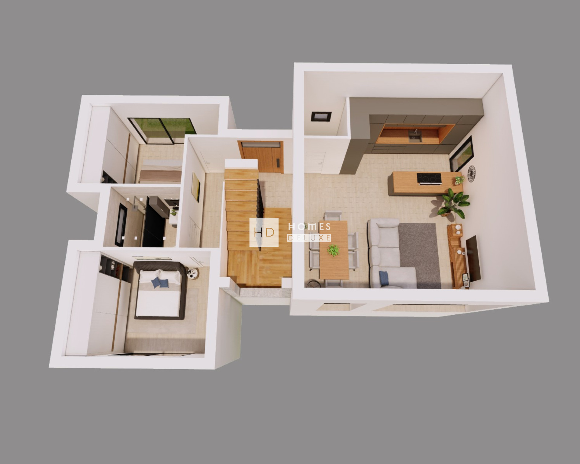 Het interieur bestaat uit een hal die leidt naar de ruime open lounge en eetkamer met hoge plafonds en grote ramen die uitkomen op het terras en de tuin. Binnen de belangrijkste leefruimte is een volledig ingerichte moderne Amerikaanse keuken en een aparte bijkeuken. Op de begane grond bevindt zich ook de indrukwekkende eerste suite met een grote slaapkamer, een en-suite badkamer en een inloopkast/dressingruimte. De binnentrap leidt je naar de eerste verdieping met nog eens twee ruime slaapkamers en een aparte gastenbadkamer. Het pand heeft ook een afgewerkte kelderverdieping met een grote multifunctionele ruimte waar je een tweede lounge, fitnessruimte, speelzalen, enz. van kunt maken, afhankelijk van je wensen en eisen. Er is ook een bodega-ruimte, nog een tweepersoonsslaapkamer en een tweede gastenbadkamer, perfect voor gasten of grotere gezinnen. De kelder geniet veel natuurlijk licht dankzij de Engelse patio en de grote ramen.