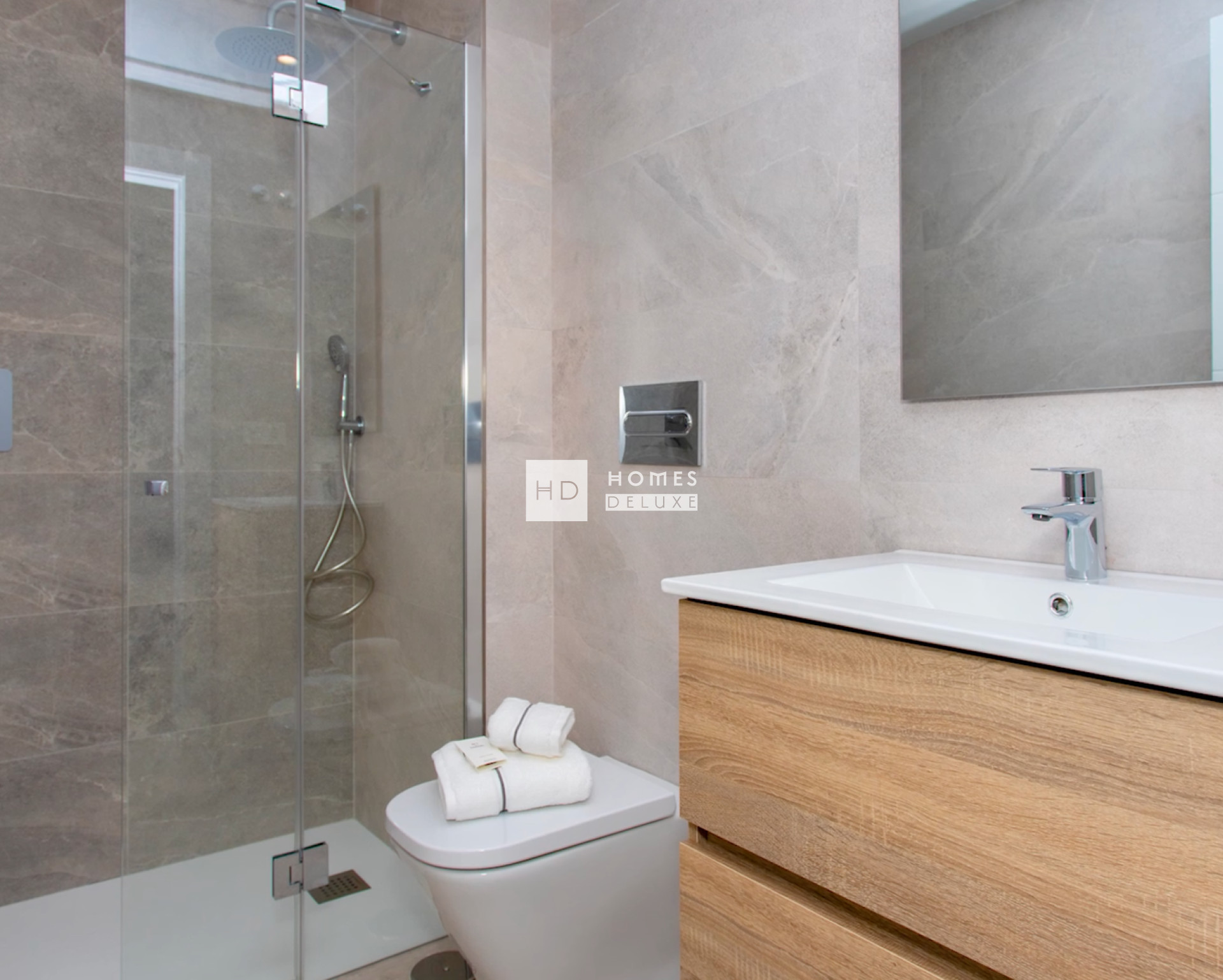 De gemeenschappelijke ruimte beschikt over een prachtig zwembad in strandstijl met waterval, perfect om af te koelen en te ontspannen in een moderne, prachtig vormgegeven omgeving. Daarnaast is er een uitnodigende chill-outruimte met ruimte voor ligstoelen en parasols, ideaal om van de zon te genieten en tot rust te komen. Het complex beschikt over parkeerplaatsen in de open lucht, waarbij elke parkeerplaats is voorzien van een voorinstallatie voor oplaadpunten voor elektrische voertuigen, wat zowel gemak als duurzaamheid biedt. Daarnaast is er een gemeenschappelijke fietsenstalling, ontworpen om het dagelijks leven gemakkelijker te maken en tegelijkertijd een actieve levensstijl te stimuleren. Een omgeving die is gecreëerd om in elk detail comfort, functionaliteit en welzijn te bieden.