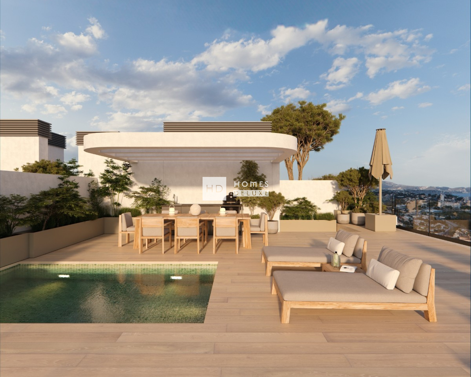 Penthouses met dakterras, uitstekende gemeenschappelijke voorzieningen en een prachtig uitzicht op zee