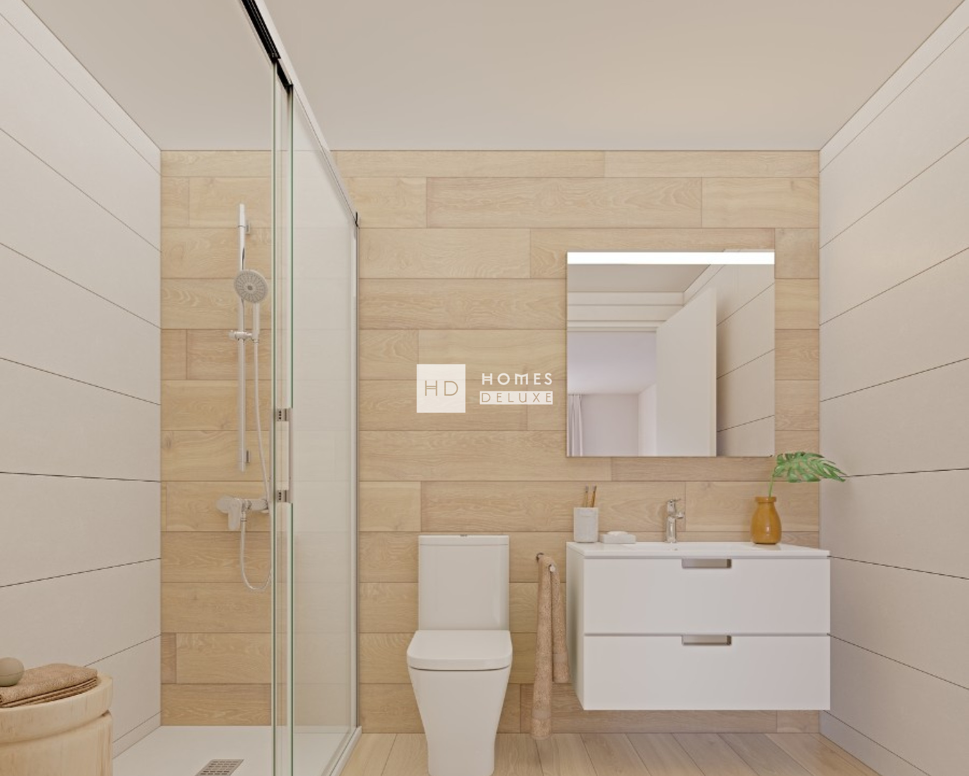 De indeling bestaat uit een hal die uitkomt op de lichte en ruime open woon- en eetkamer met grote ramen die uitkomen op het privéterras. In de woonruimte bevindt zich een volledig ingerichte, moderne keuken in Amerikaanse stijl met boven- en onderkasten in een witte afwerking, en er is een handige aparte wasruimte. De grote hoofdslaapkamer heeft een eigen badkamer; verder is er nog een ruime tweepersoonsslaapkamer en een aparte gastenbadkamer. De penthouses hebben een interne trap die u naar het uitgebreide dakterras brengt, waar u de hele dag van de zon kunt genieten en het prachtige weidse uitzicht kunt bewonderen. De woningen zijn voorzien van airconditioning via luchtkanalen, roestvrijstalen keukenapparatuur (elektrische oven, inductiekookplaat, afzuigkap, koelkast met vriesvak, inbouwvaatwasser), inbouwkasten in alle slaapkamers, elektrische handdoekverwarming in de badkamers, ondergrondse parkeergarage en berging.