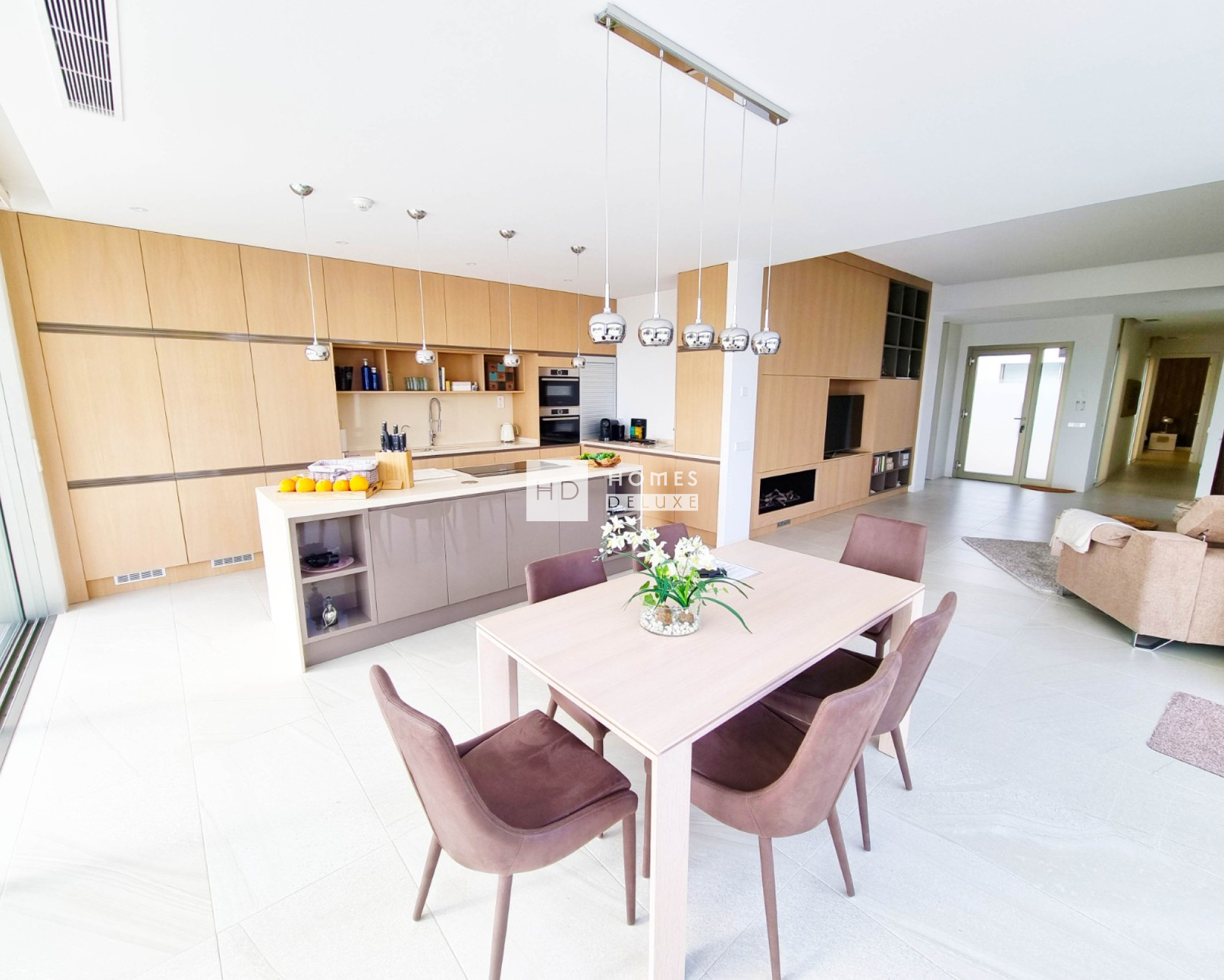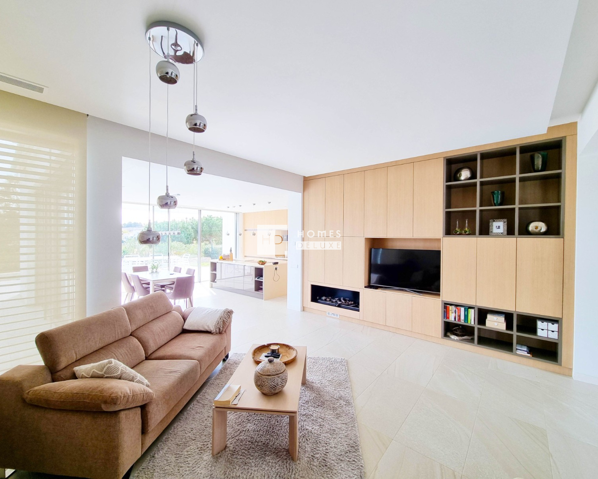 De buitenruimtes zijn al even indrukwekkend, met een privézwembad in een prachtig aangelegde tuin, een serene oase van privacy en rust. Elk detail is zorgvuldig overwogen om het gevoel van luxe te versterken, van de naadloze overgang tussen binnen en buiten tot de hoogwaardige afwerkingen in de hele woning.